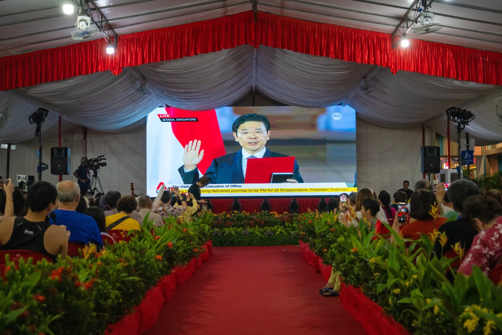 2024年5月新加坡總理黃循財宣誓就職典禮的轉播畫面。