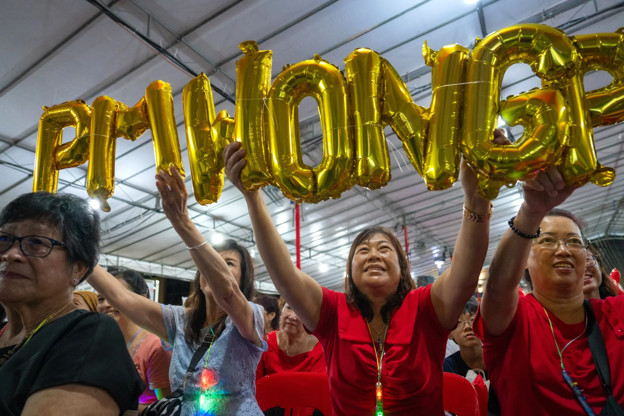 2024年5月黃循財宣誓就職儀式上的支持者。攝影師:Nicky Loh/Bloomberg### 全球必讀