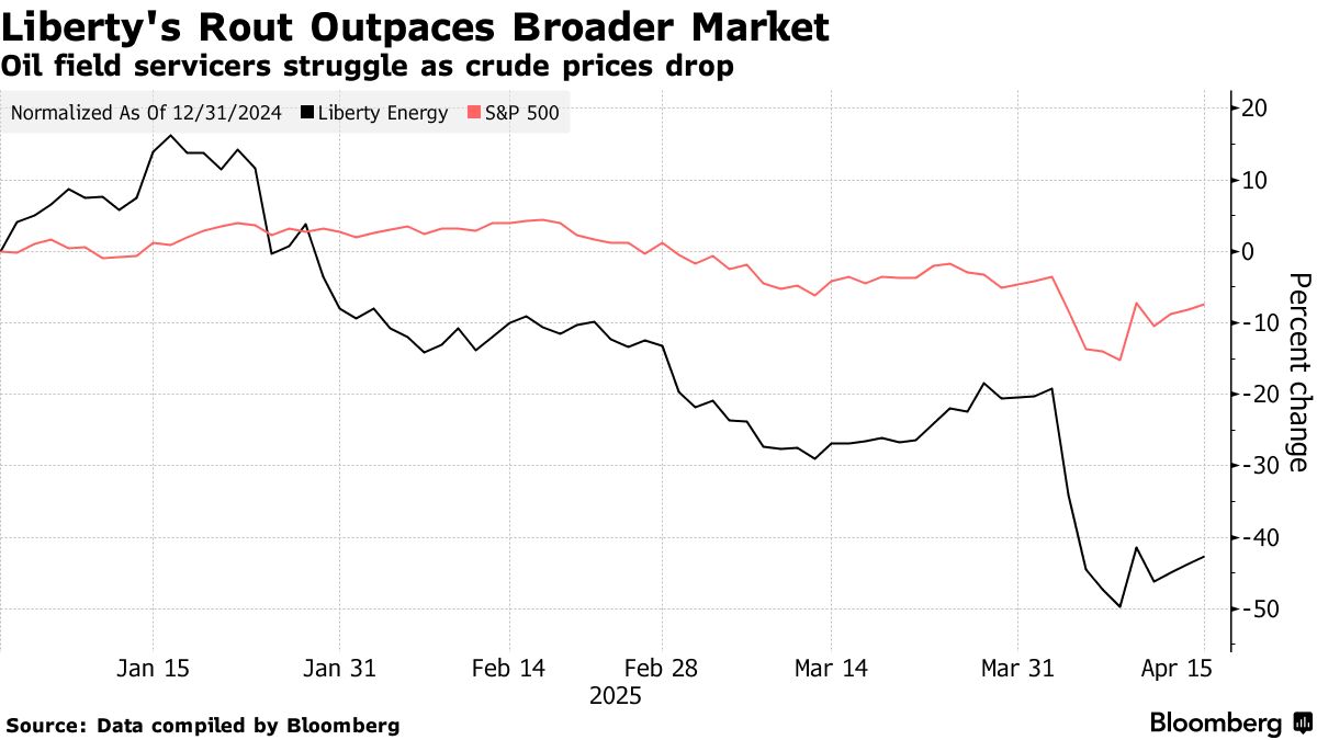 彭博社新經濟論壇壓力加劇:每個人都成為關税目標:貿易追蹤卡尼和弗裏蘭在辯論中爭奪誰能成為特朗普最強勁的對手全球洞察:新興市場前景的三個要點高管們表示,全球領導人需要採取不結盟立場服務支出的下降意味着美國石油產量今年將自疫情以來首次停滯甚至下降。到目前為止,服務公司首當其衝受到關税擔憂的影響:這些公司的指數今年已下滑28%,而石油和天然氣生產商的指數下滑7%。