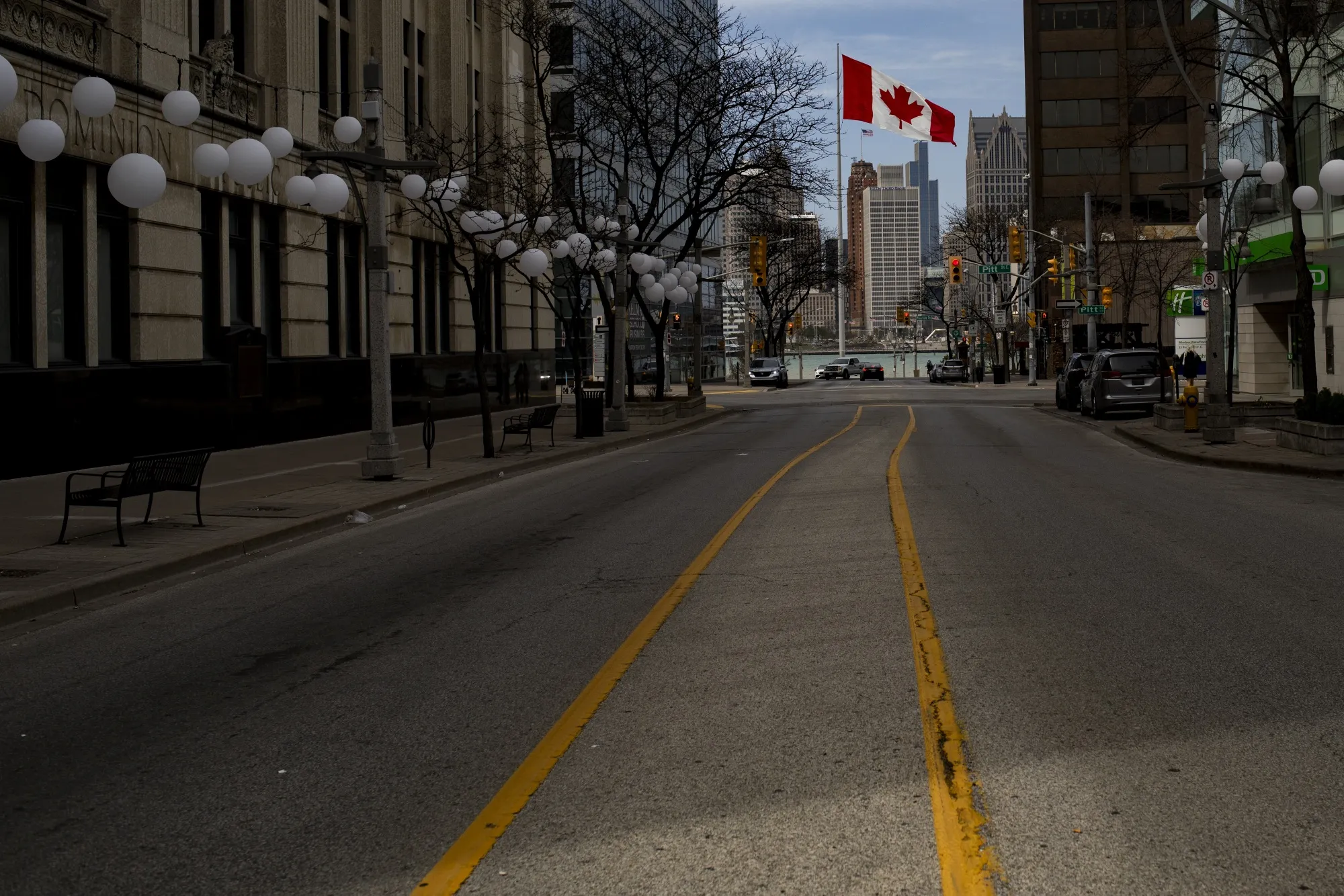 在特朗普多次發表將加拿大變成美國第51個州的言論後,全市的住宅和商鋪紛紛掛出標語,哀嘆貿易戰並捍衞加拿大主權。諸如“加拿大不出售”之類的口號在市中心隨處可見,這裏正對着底特律的天際線。