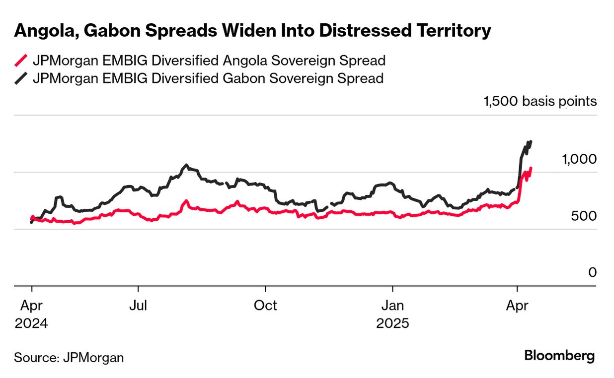 主權信用債同樣成為焦點。安哥拉和加蓬(這兩個國家石油出口至少佔其總出口的三分之二)債券較美國國債的額外收益率上週躍升至1000個基點以上,使其進入不良債務領域。包括哥倫比亞和尼日利亞在內的其他石油出口國的信用債也落後於彭博新興市場主權債券指數。
