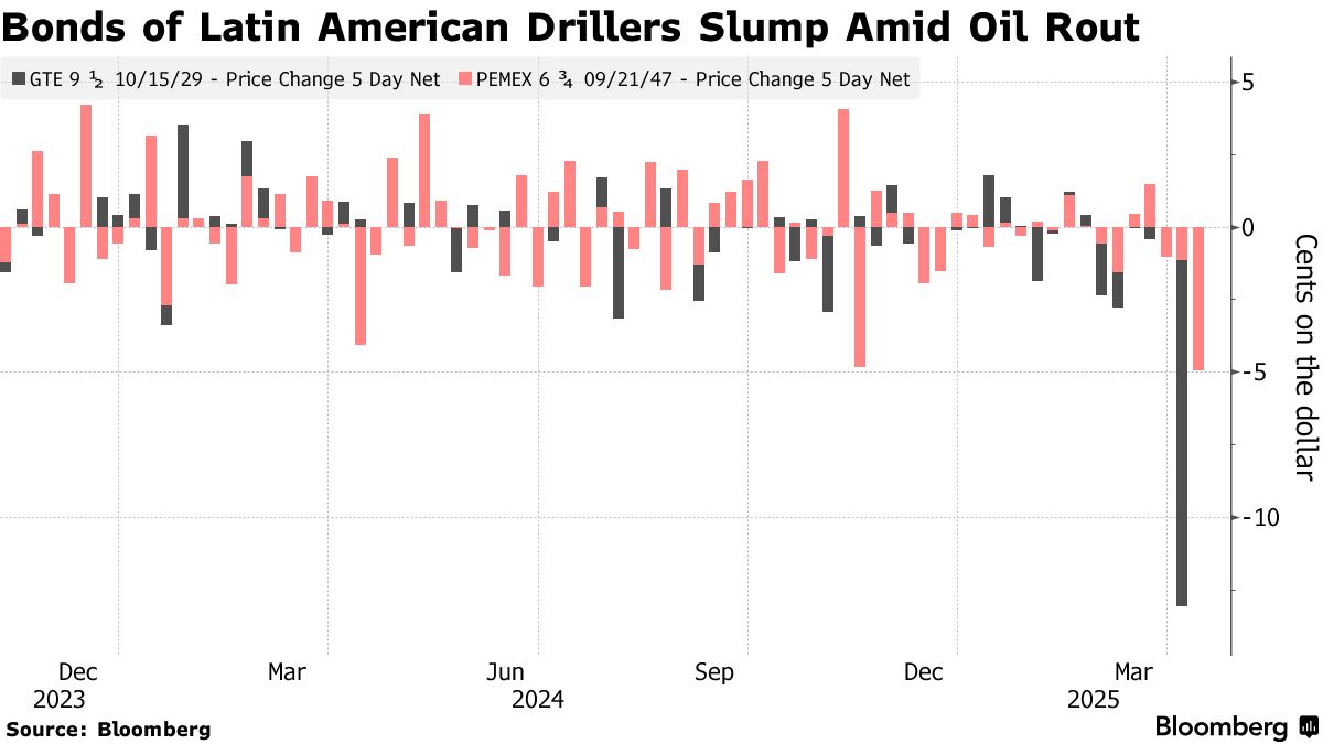 基金經理們一直在拋售新興市場石油企業的債券:其中受衝擊最嚴重的是墨西哥國家石油巨頭墨西哥石油公司的債券,本月早些時候其債券創下2020年以來最大單週跌幅。在美洲運營的加拿大鑽井公司格蘭 Tierra的債券4月份則創下有記錄以來最大跌幅。