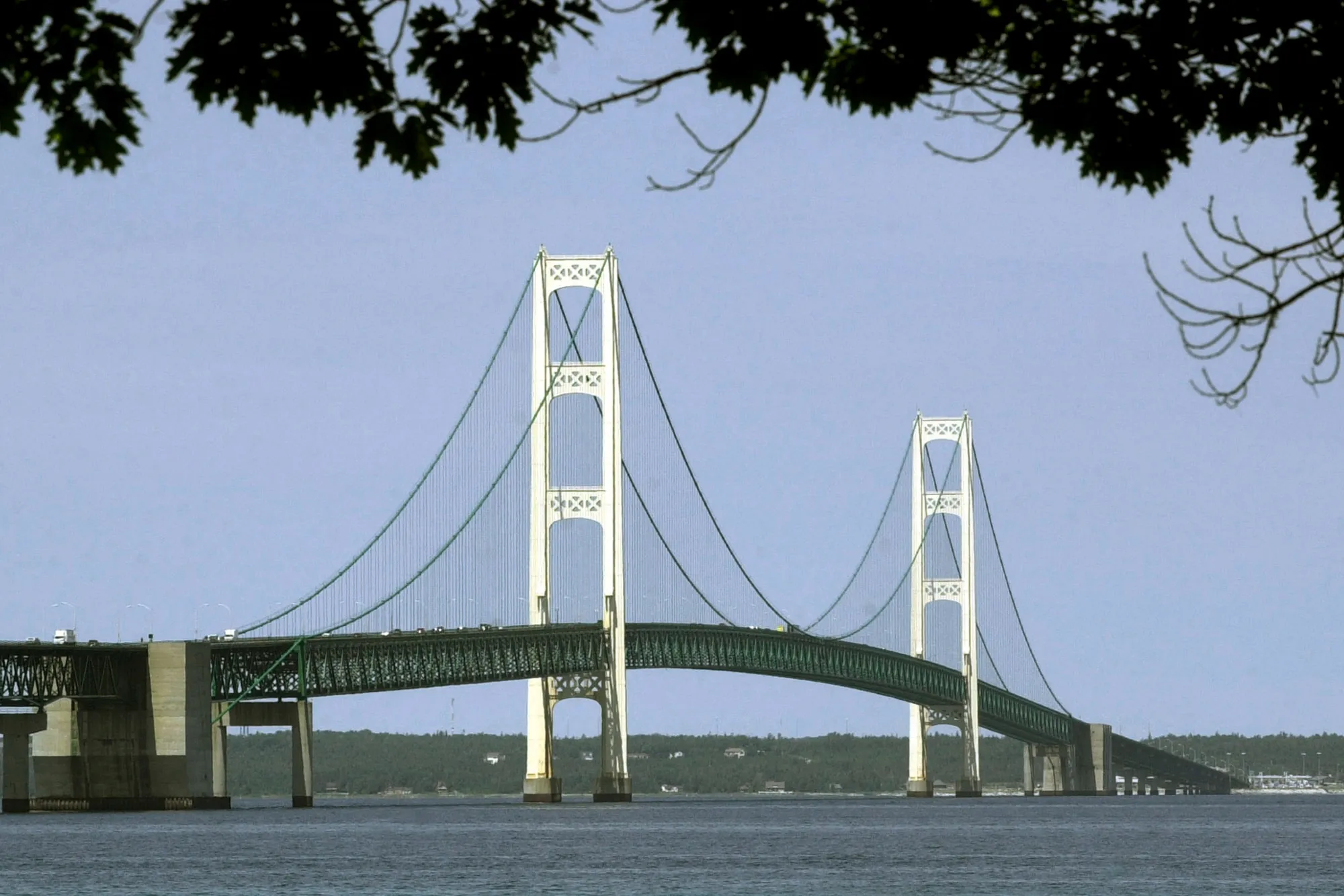 橫跨麥基諾海峽的麥基諾大橋。攝影師:卡洛斯·奧索里奧/美聯社照片特朗普政府正在加速審批安橋公司在密歇根州北部麥基諾海峽建設爭議性管道隧道所需的許可證。