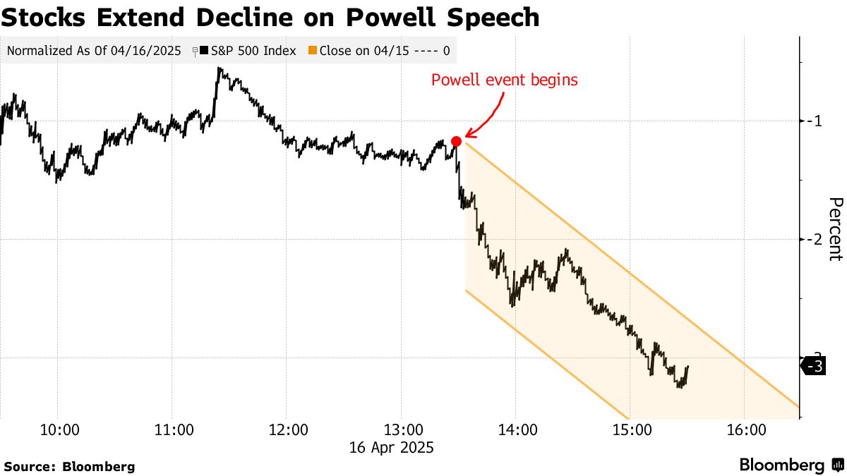 這是股市投資者在唐納德·特朗普總統宣佈對多個國家實施懲罰性關税引發兩週波動後始料未及的信息。一場劇烈拋售(隨後出現了自2008年以來最強勁的單日反彈)曾讓投資者預期美聯儲主席會暗示,若經濟顯現疲軟跡象將願意出手干預。