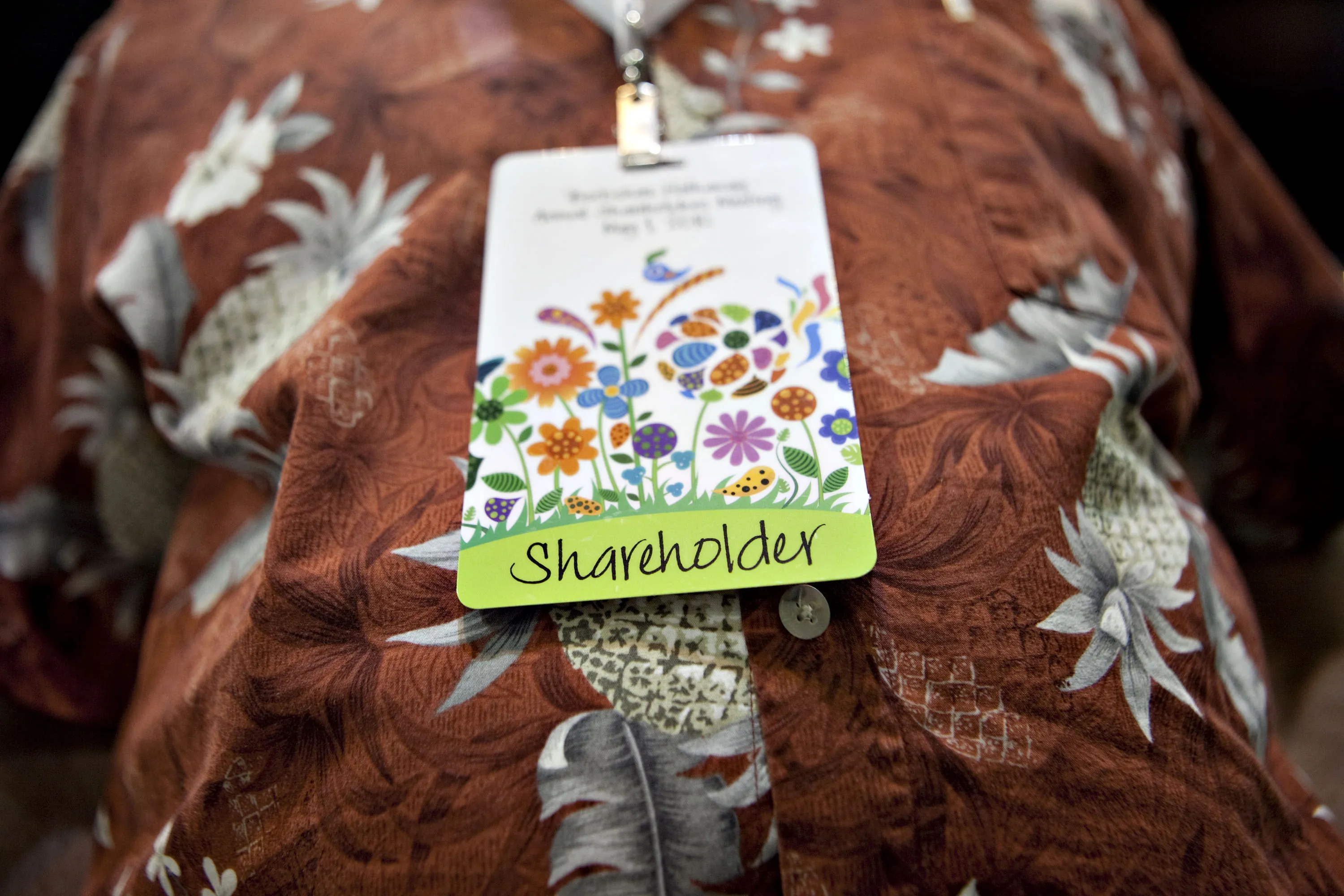 一位股東站在伯克希爾哈撒韋年度股東大會的展覽區。