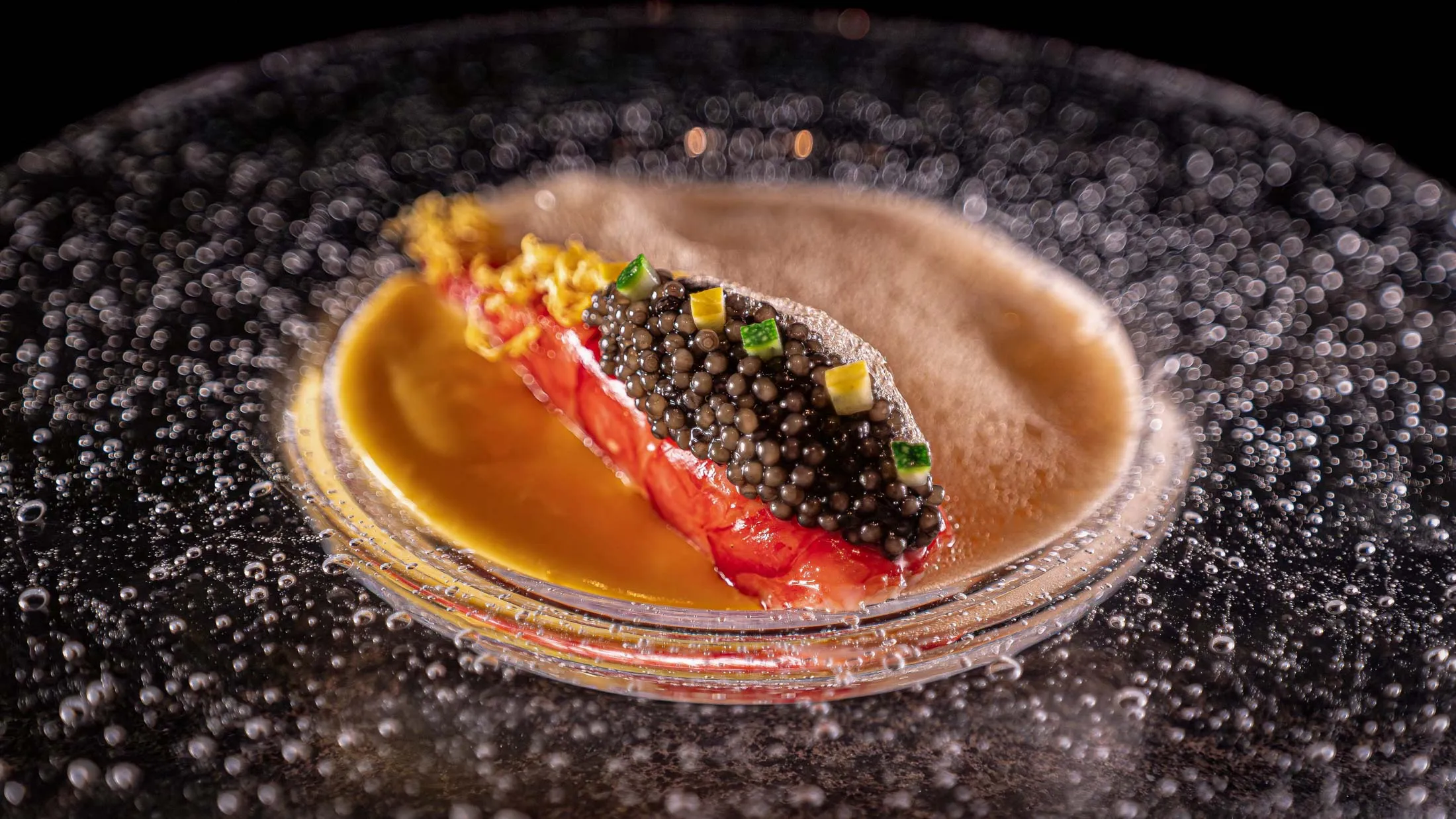 一星餐廳Konro的魚子醬料理。攝影師:Jacob Bickelhaupt/米其林最新上榜的Itamae Ao——由Nando Chang主理的邁阿密日秘融合餐廳Itamae升級版——憑藉其創意主廚發辦料理摘得星星。