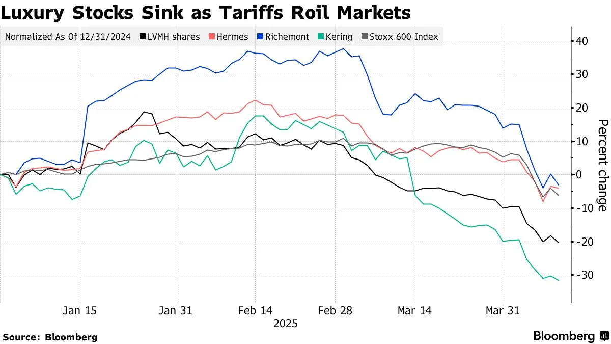 這些趨勢在法國頂級品牌的股價表現中顯露無遺:開雲集團年內市值蒸發31%,人頭馬君度下跌25%,路威酩軒下滑24%,保樂力加跌去15%。當然,長期價值或許正悄然顯現。奢侈品巨頭們具備開拓新領域的財務靈活性,且其頂級客户在關税戰中具備支付溢價的能力可能帶來利好。愛馬仕已明確表示將通過提高美國售價來完全抵消10%全面關税的影響。