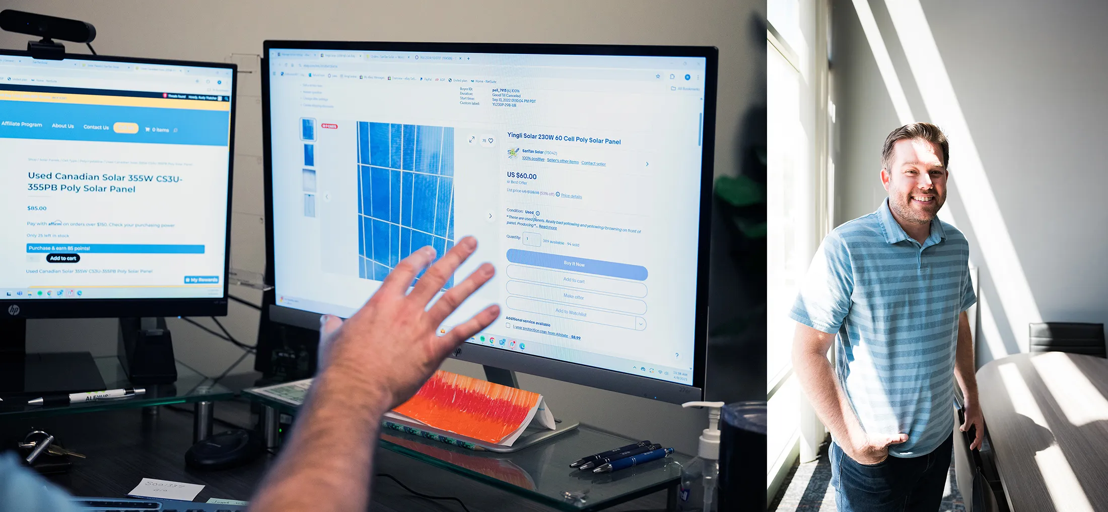 SanTan Solar銷售經理Rusty Thatcher正在展示公司官網和eBay在售的組件。他將二手板買家描述為"追求能源自主"且"注重預算"的人羣。攝影師:凱特琳·奧哈拉為彭博綠色頻道拍攝據SanTan銷售經理拉斯蒂·撒切爾透露,新冠疫情期間,隨着美國人居家時間增多,二手太陽能板需求激增。“主要用户羣體是那些更追求能源獨立、預算意識更強的人羣——他們真正在尋找替代其他能源的低成本方案,“撒切爾表示。他補充説,這些客户可能想為房車安裝太陽能系統,或需要更換現有陣列中的部分組件。