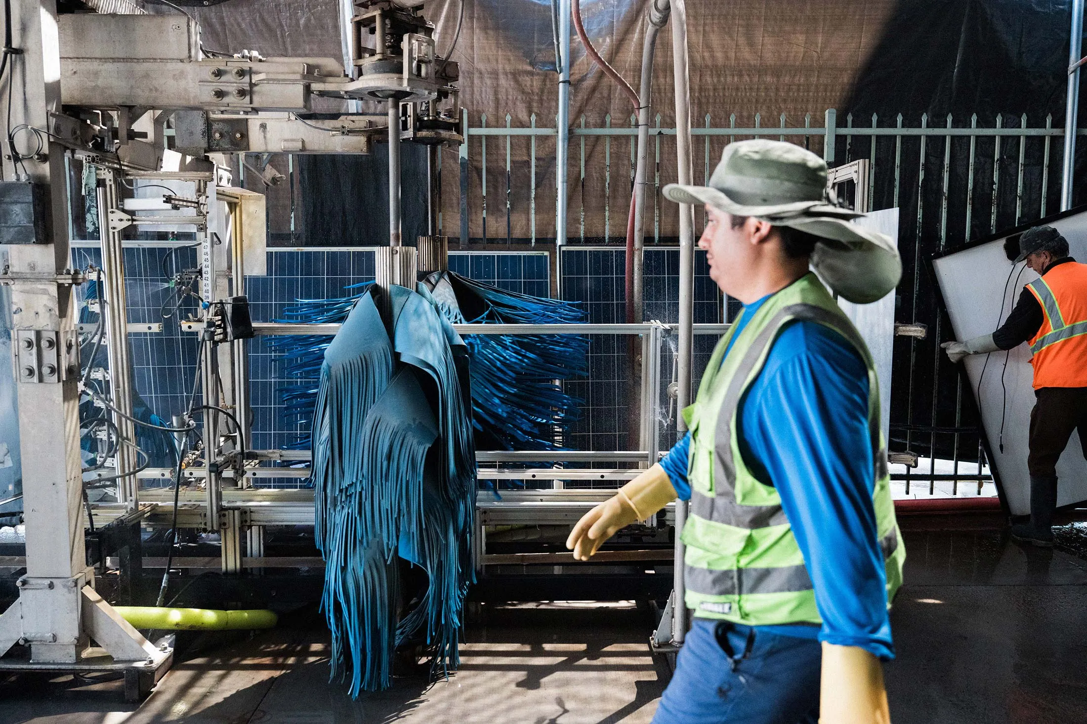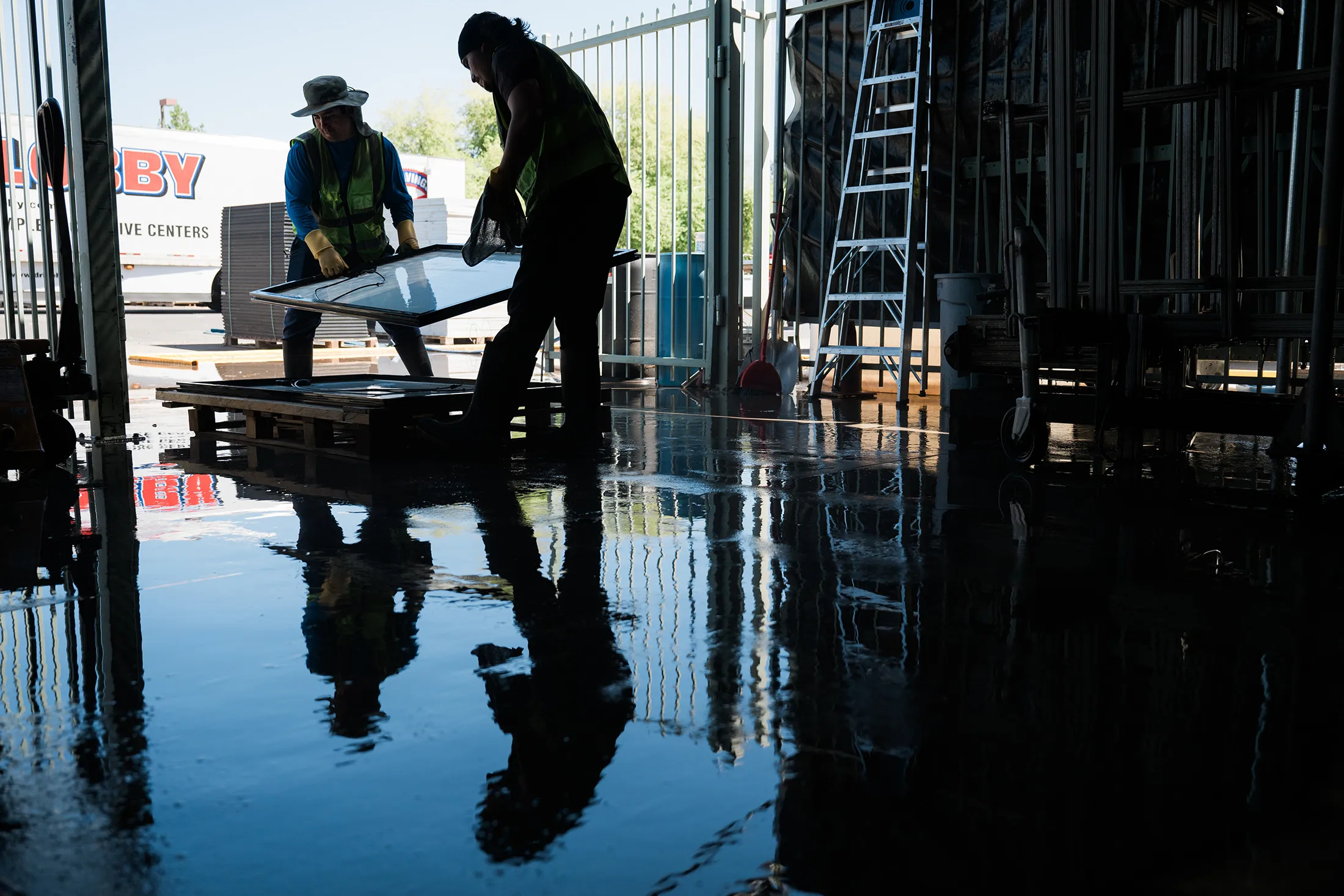 在亞利桑那州吉爾伯特的SanTan Solar公司,退役太陽能項目的電池板經過清潔後重新掛牌出售。