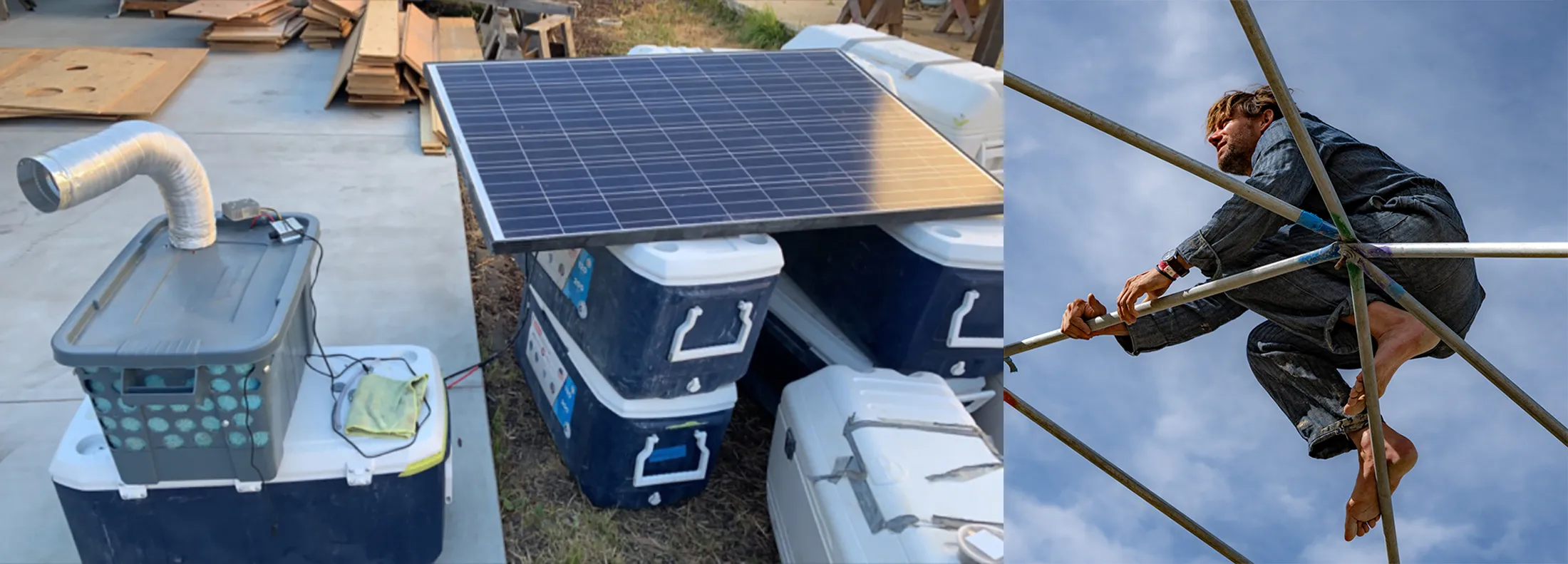 託德·達布尼DIY的太陽能蒸發冷卻器(左、中)正在2019年進行測試。右圖為2023年達布尼在內華達州黑石城火人節上協助拆卸網格穹頂。左圖來源:託德·達布尼;右圖來源:斯圖爾特·夏普隨着工廠生產的新電池板越來越多,二手電池板的供應量也隨之增長。達布尼是美國選擇購買二手太陽能板的消費者之一,他們通常通過eBay、克雷格列表和Facebook Marketplace等平台交易。在Reddit的r/solar版塊和DIY太陽能論壇等留言板上,精打細算的買家們會分享經驗並交流安裝技巧。