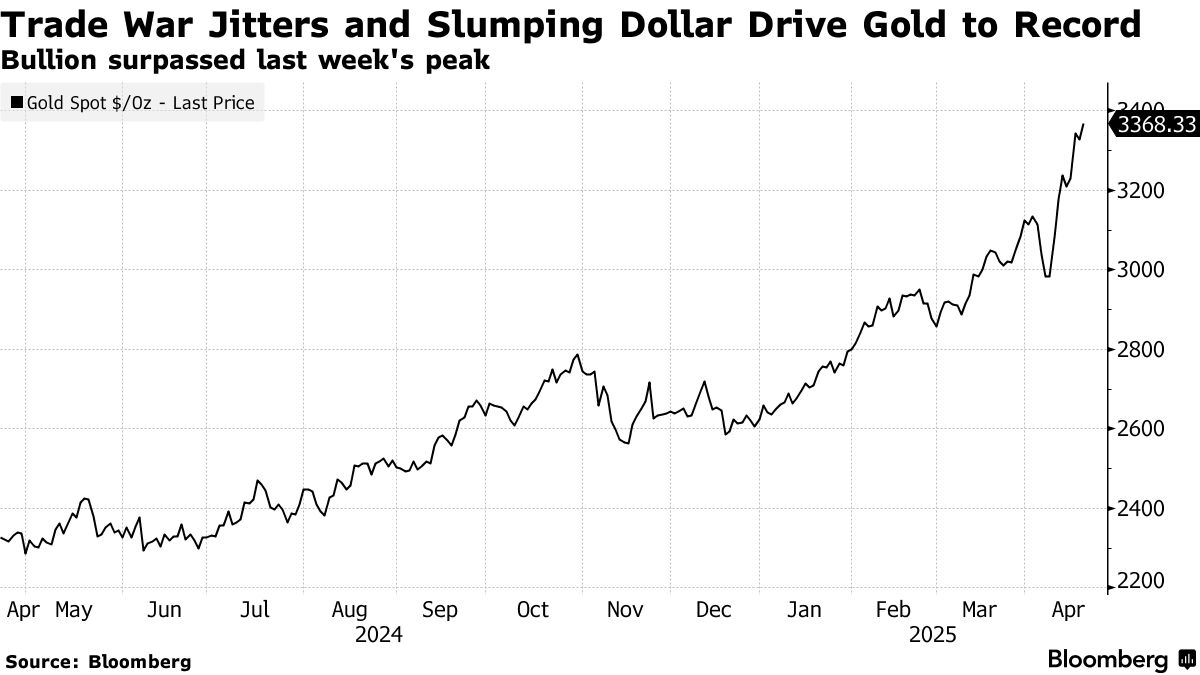 黃金(XAUUSD)因全球貿易戰擔憂主導而逼近歷史高位——彭博社