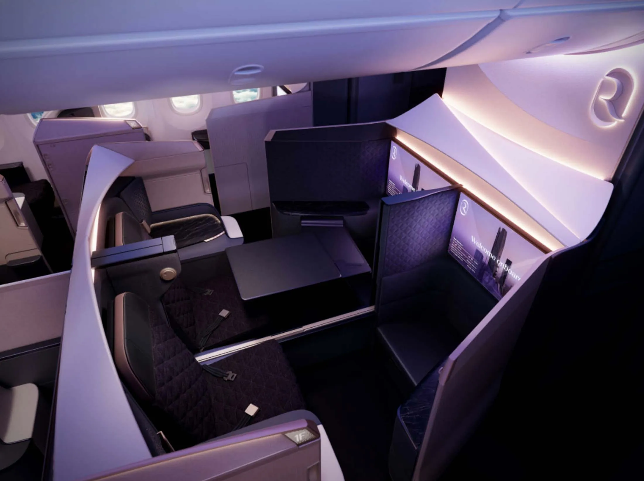 利雅得航空展示了其商務艙客艙,配備隱私隔板和可平躺座椅,旨在從阿聯酋航空和卡塔爾航空吸引高端旅客。