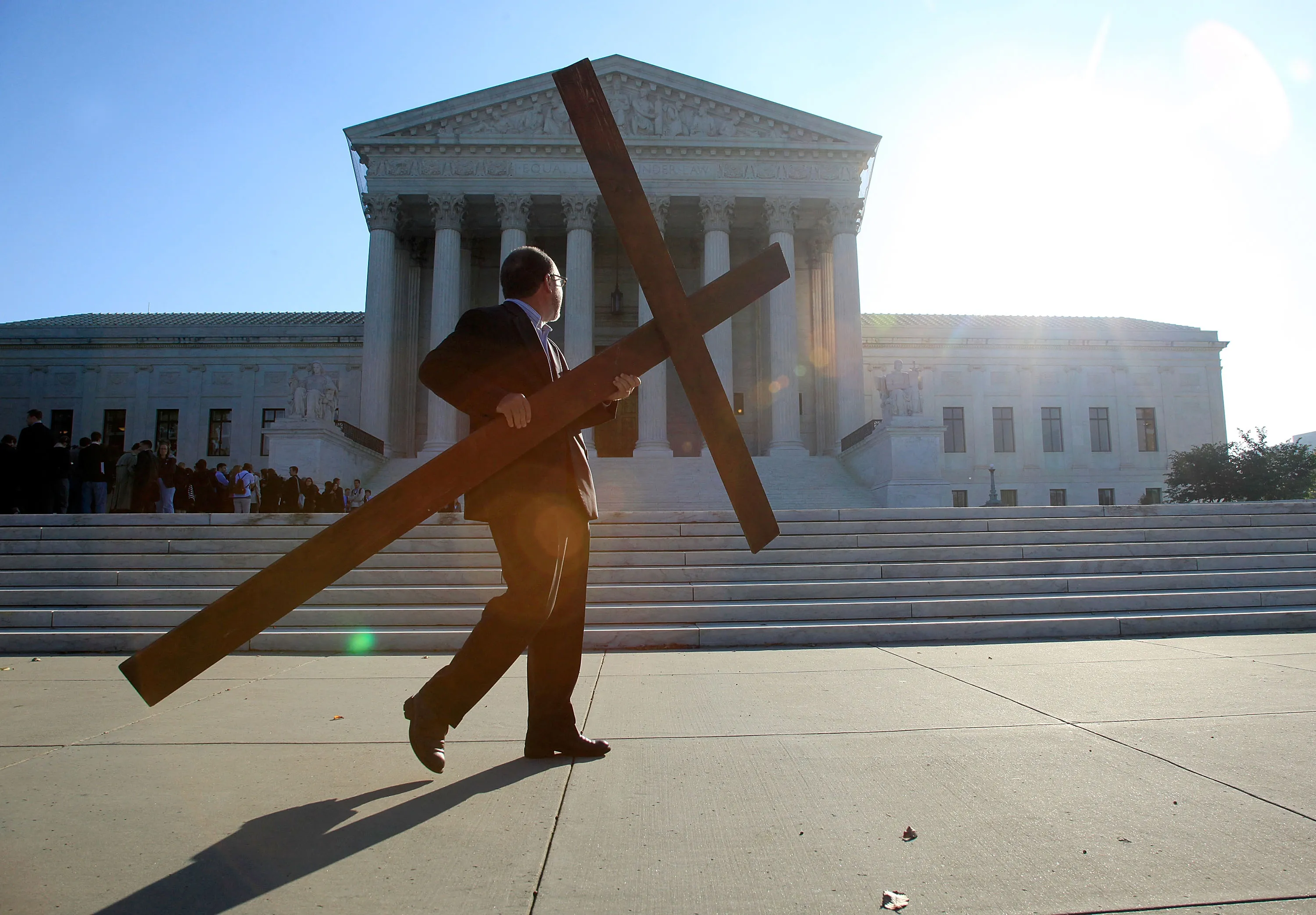 即將審理的三起案件聚焦第一修正案的不同條款:政教分離與自由行使宗教權。攝影師:馬克·威爾遜/蓋蒂圖片社美國最高法院將於週二審議公立小學使用涉及LGBTQ主題的教材卻未允許家長選擇退出是否違憲,這是本庭期三起檢驗政教分離原則的案件之一。