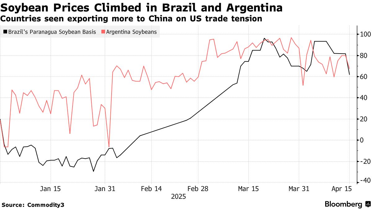 儘管如此,農產品市場價格波動仍是所有出口商面臨的風險。例如,雖然巴西和阿根廷大豆現貨溢價最初因關税公告而上漲,但全球衰退可能會抑制需求並壓低期貨價格。