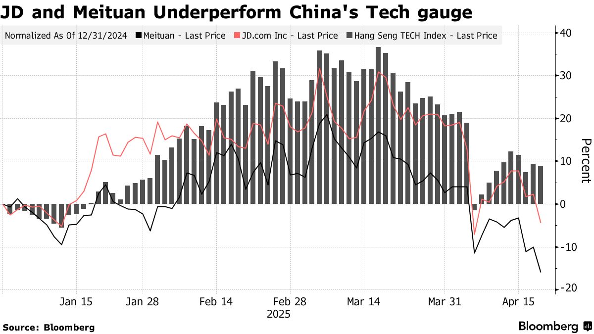 兩家公司的股價較3月高點均下跌超25%,表現遜於恒生科技指數。
