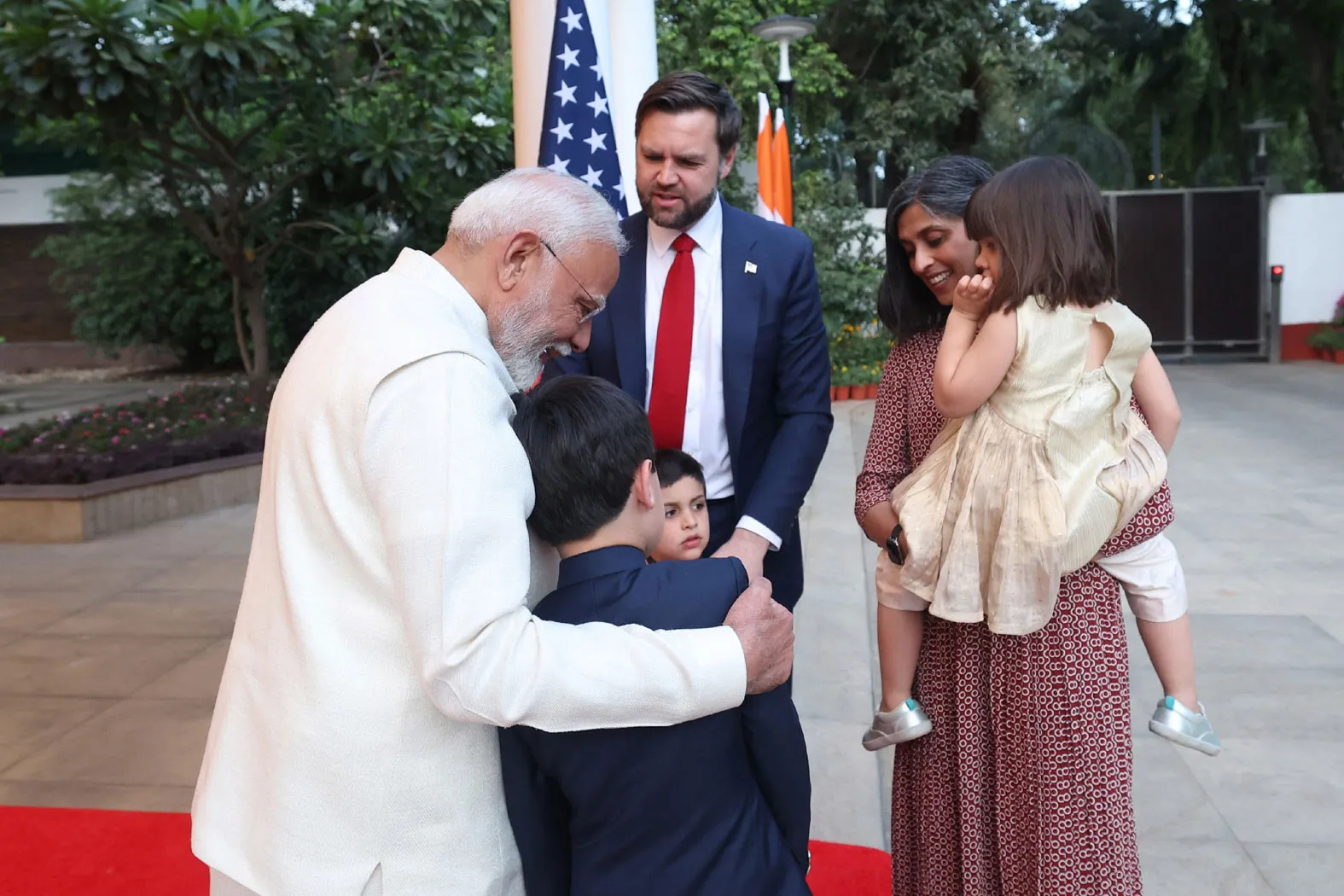 4月21日,印度總理納倫德拉·莫迪在新德里會見美國副總統JD·萬斯及其家人。