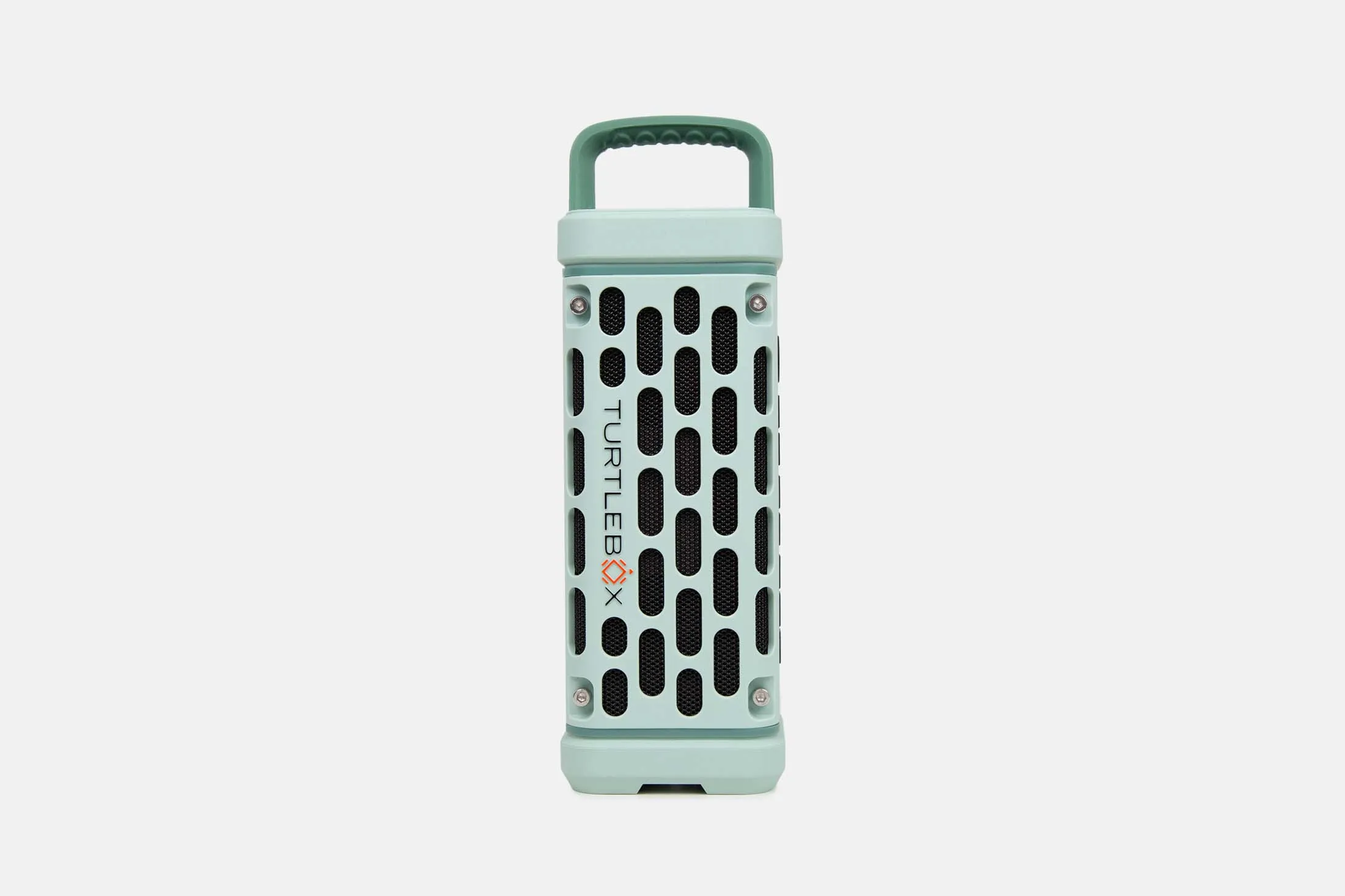 Turtlebox防水Ranger音箱圖片來源:Turtlebox普通藍牙音箱遭遇海水和沙粒侵襲時,音樂很快就會戛然而止。但售價250美元的Turtlebox Ranger絕非如此。這款為嚴苛環境設計的防水音箱不僅抗壓,還配有牢固的磁性側掛裝置。雖然高度僅8英寸(約20釐米)、直徑3英寸(約7.6釐米),卻能爆發出高達105分貝的震撼音效。