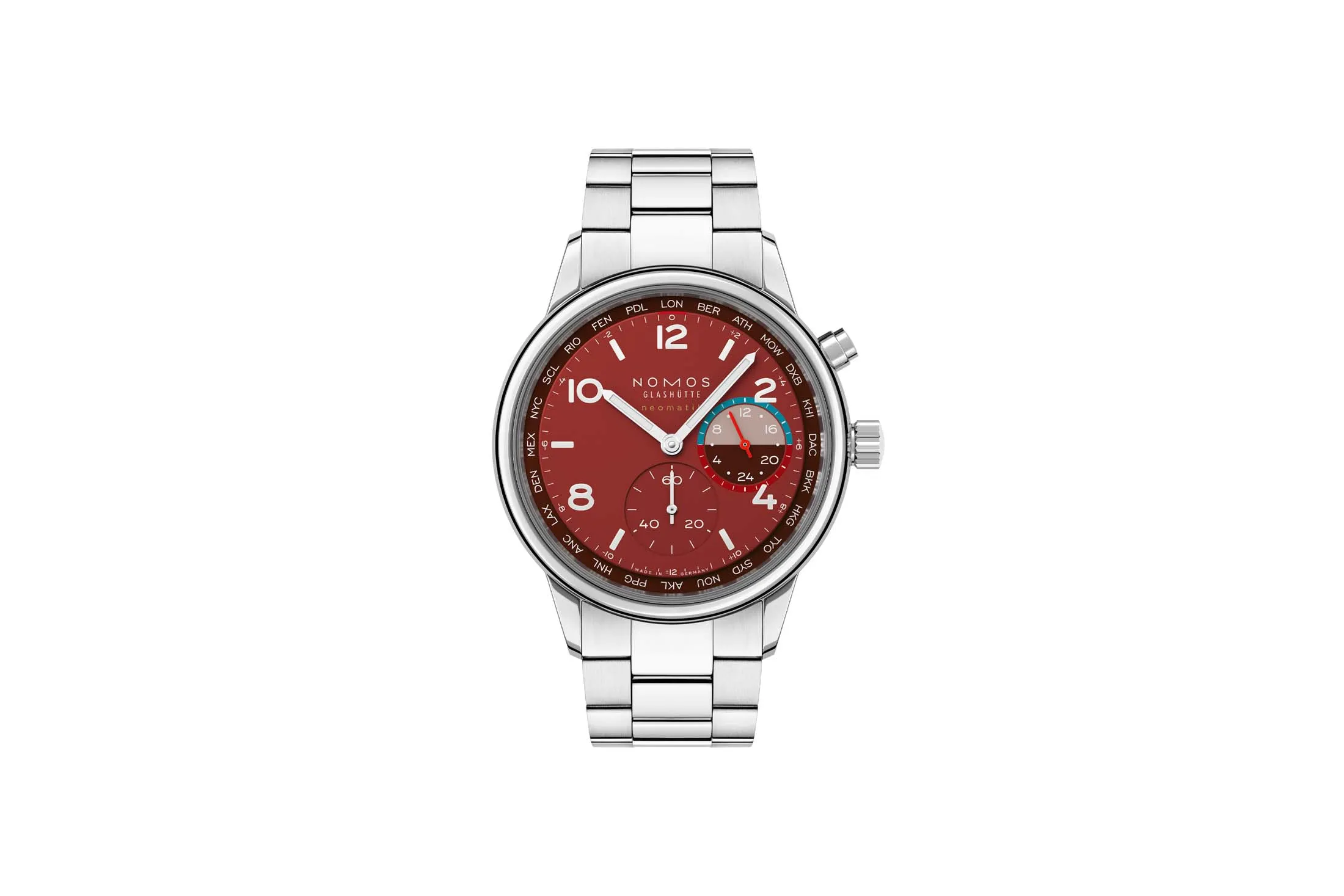 諾莫斯格拉蘇蒂Club Sport Neomatik世界時腕錶圖片來源:諾莫斯腕錶是銘刻里程碑的絕佳載體。諾莫斯格拉蘇蒂以相對親民的價格打造卓越時計,其德國血統的最新Club Sport Neomatik世界時系列(4,720美元)堪稱遊歷四方畢業生的實用工具。40毫米鋼表提供六種明快配色組合,可顯示全球24個城市時間,同時通過帶晝夜指示的24小時副錶盤追蹤家鄉時間,讓他們永遠知道何時該撥通電話。