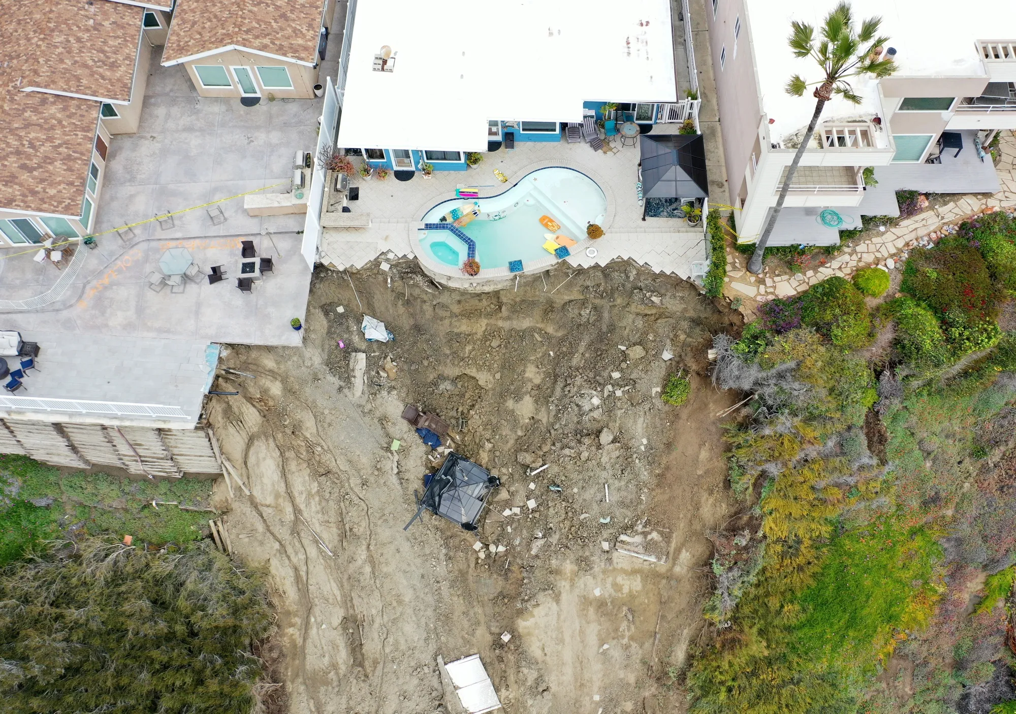 美國加利福尼亞州聖克萊門特市的山體滑坡現場。