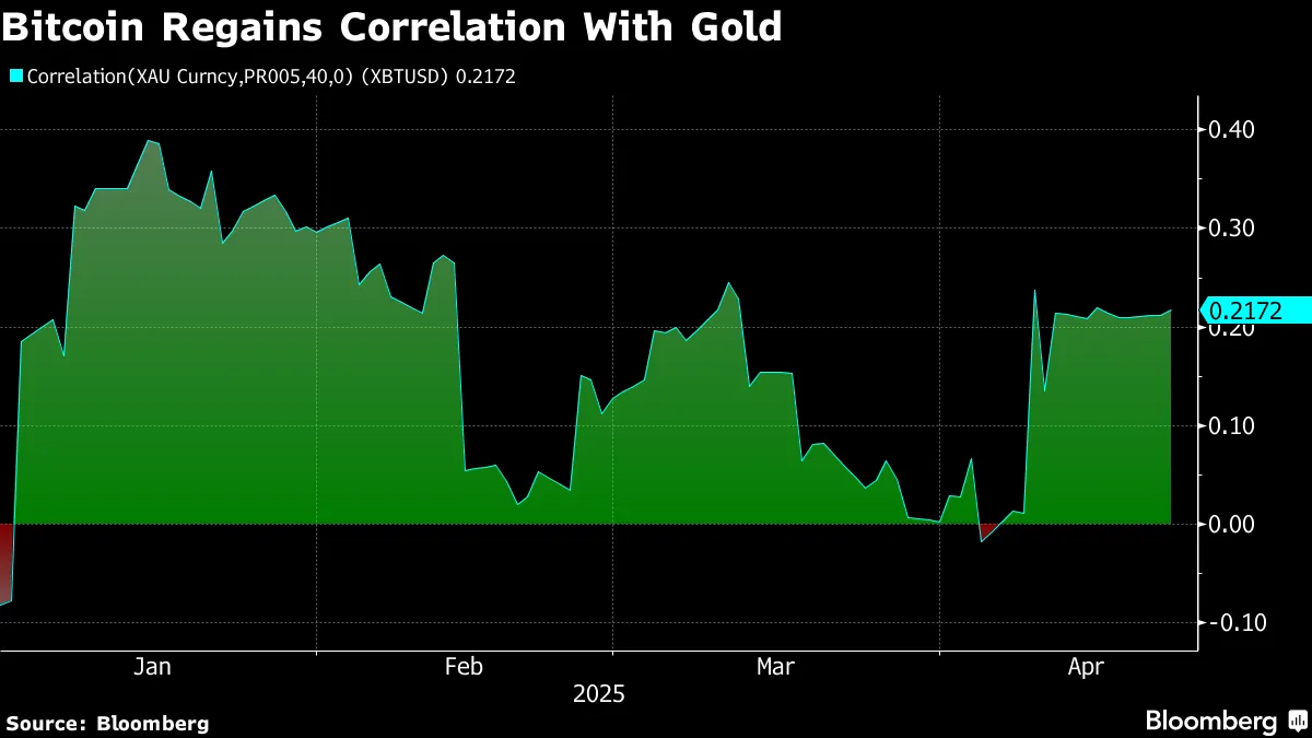 比特幣自3月初以來首次突破90,000美元,這增強了市場對最大數字代幣終於擺脱長期跟隨美國科技股同向波動趨勢的樂觀情緒。比特幣自4月7日低點已反彈近23%,交易模式更接近黃金,並開始與美國風險資產脱鈎。