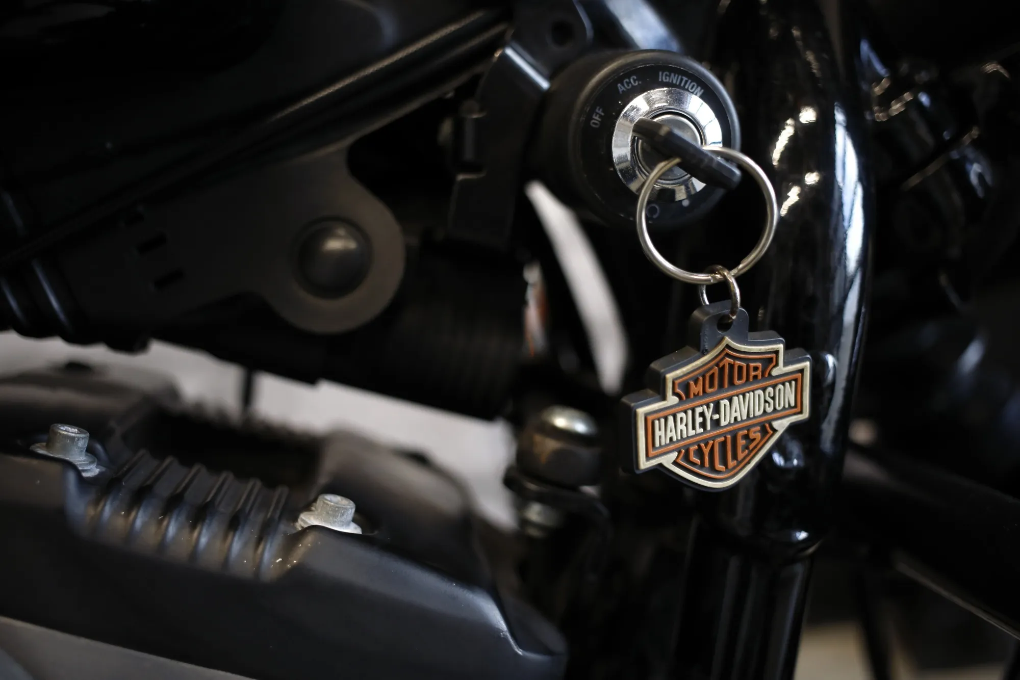 美國肯塔基州路易斯維爾市哈雷戴維森 dealership 展示的摩托車鑰匙鏈。