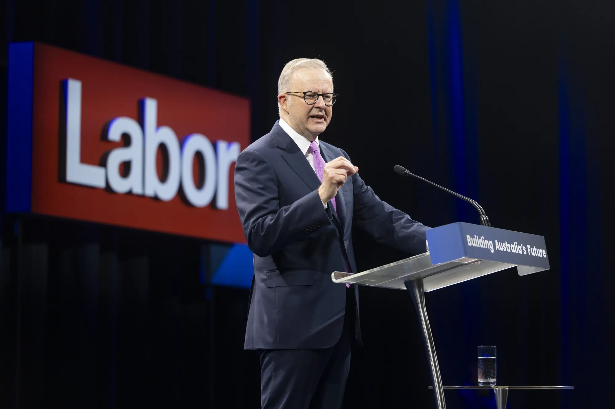 4月13日,安東尼·阿爾巴內塞在澳大利亞珀斯舉行的工黨聯邦選舉競選啓動會上發表講話。