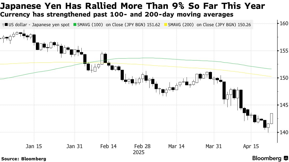 但過去三週,隨着市場擔憂特朗普關税政策可能損害美國經濟,美元遭遇廣泛拋售,日元隨之走強。本週早些時候,日元兑美元匯率突破140關口,為去年9月以來首次。