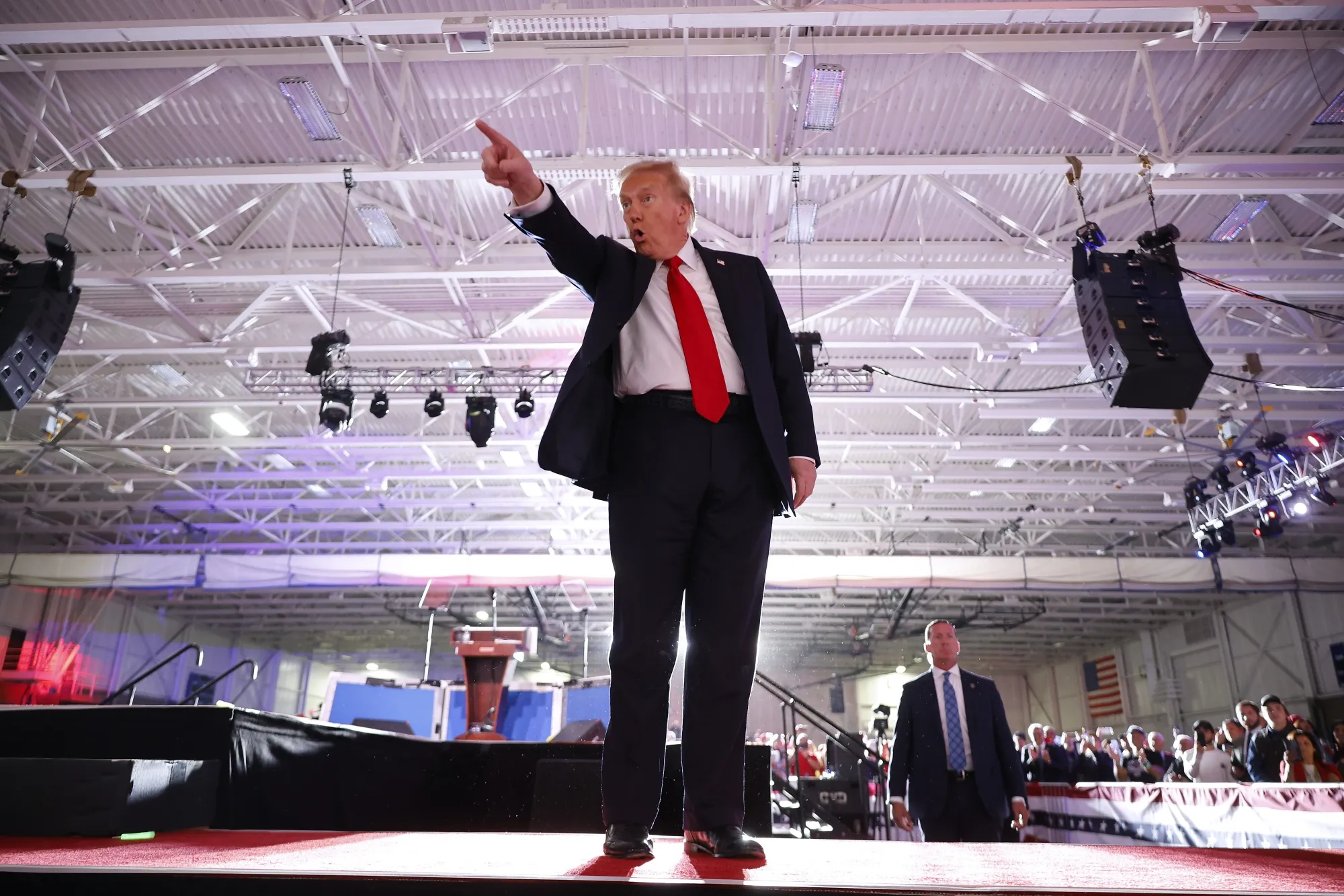 2024年11月,唐納德·特朗普在密歇根州沃倫市馬科姆社區學院舉行競選集會攝影師:Chip Somodevilla/Getty Images 總統 唐納德·特朗普計劃在汽車製造中心密歇根州馬科姆縣慶祝其第二任期執政百日裏程碑,這個藍領工人大本營的選民們表示,他正通過顛覆市場的全面關税政策保護他們的利益。