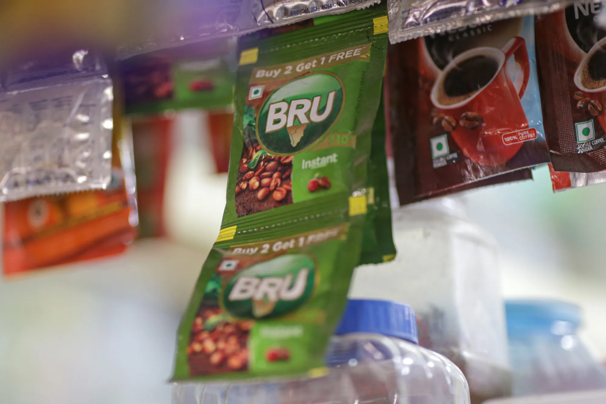 印度孟買一家雜貨店內陳列的印度斯坦聯合利華Bru速溶咖啡小包裝。攝影師:Dhiraj Singh/彭博社該公司家居護理業務收入增長1.8%,但食品業務下降0.38%。美容板塊增長4.22%,個人護理業務上升2.96%。
