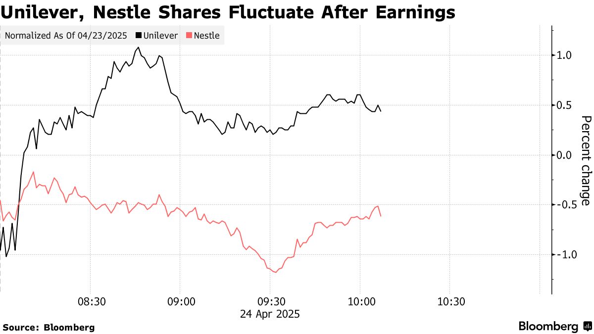 雀巢和聯合利華股價早盤下跌後收復部分失地。