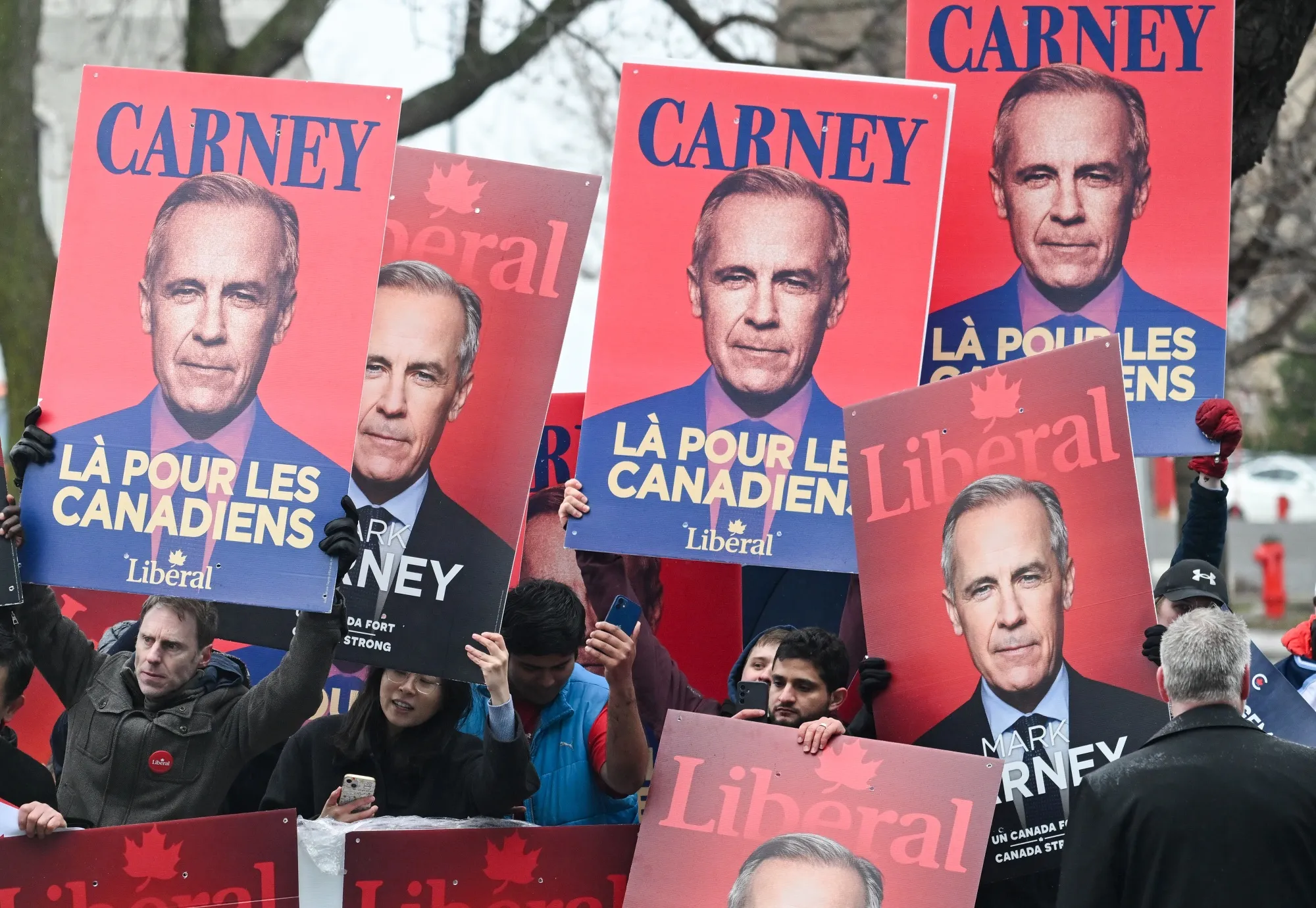 馬克·卡尼在魁北克蒙特利爾的支持者。