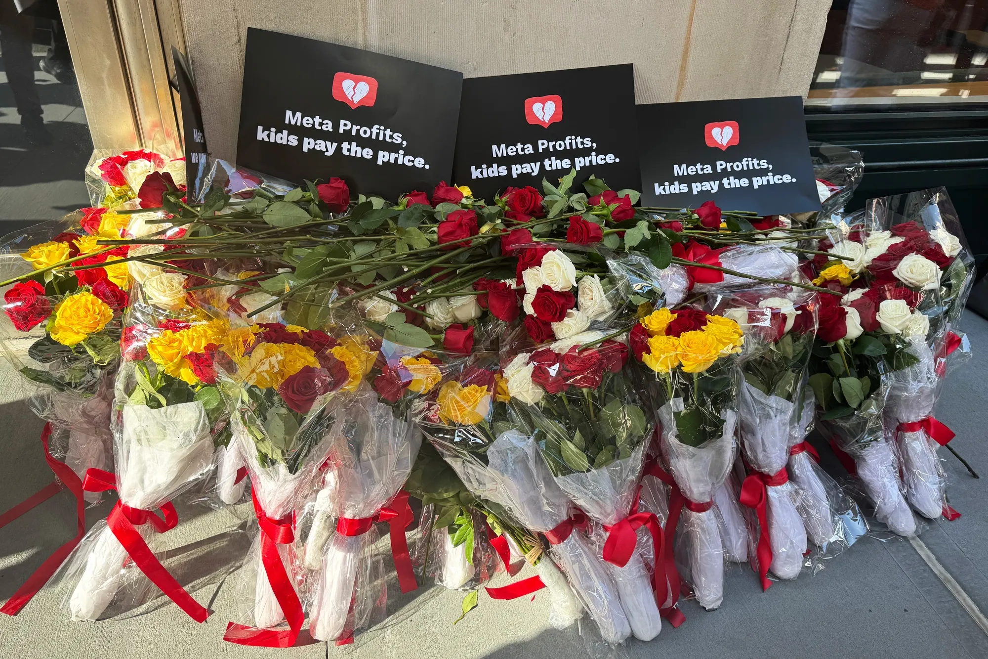 超過150人蔘加了示威活動,許多人手持孩子的照片。他們在Meta大門前放置了650朵黃、白、紅玫瑰,並附上一封給首席執行官馬克·扎克伯格的信,要求他立即採取行動更好地保護青少年上網安全。