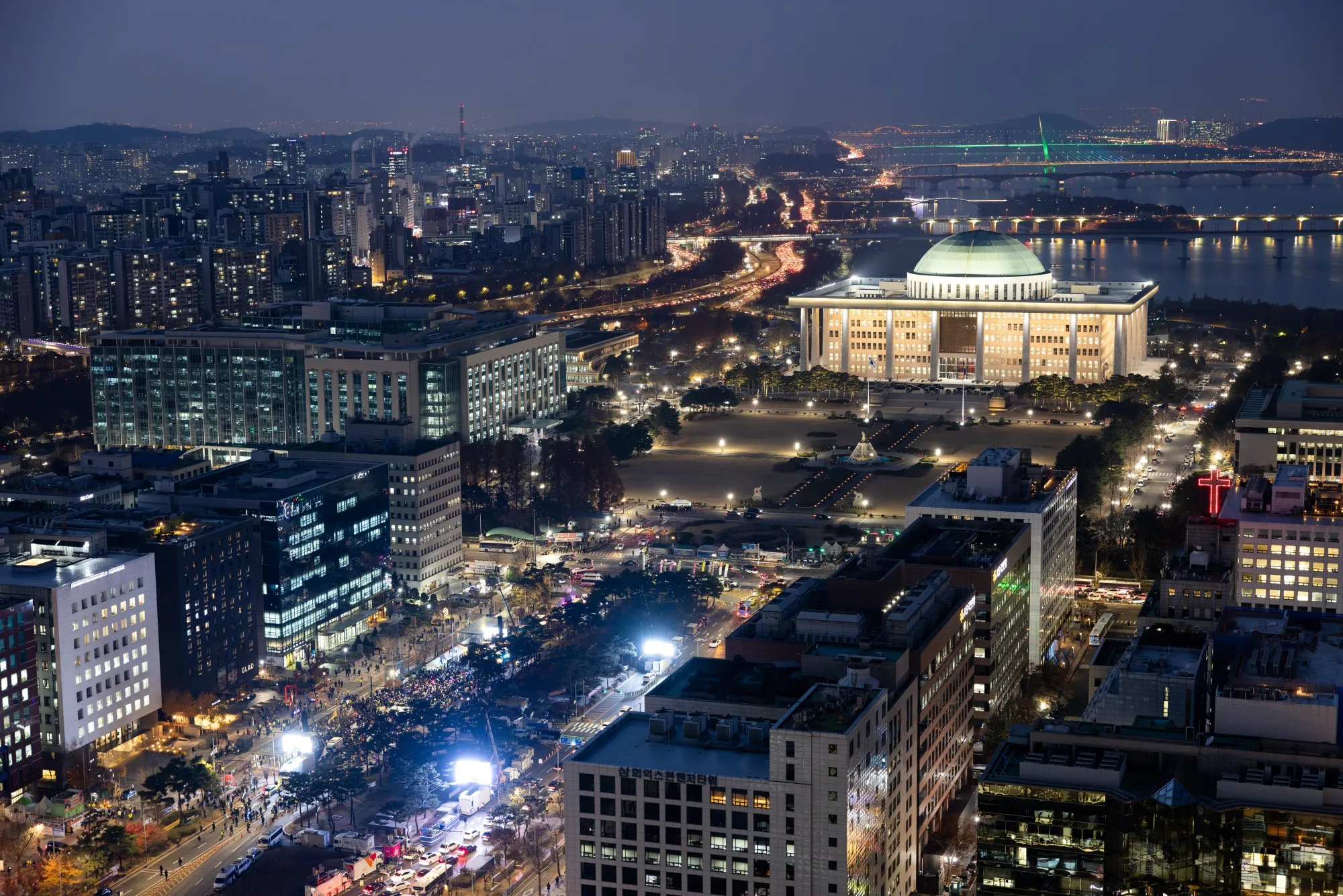 圖中右上為位於首爾的韓國國會大廈。攝影師:SeongJoon Cho/彭博社### 政治改革