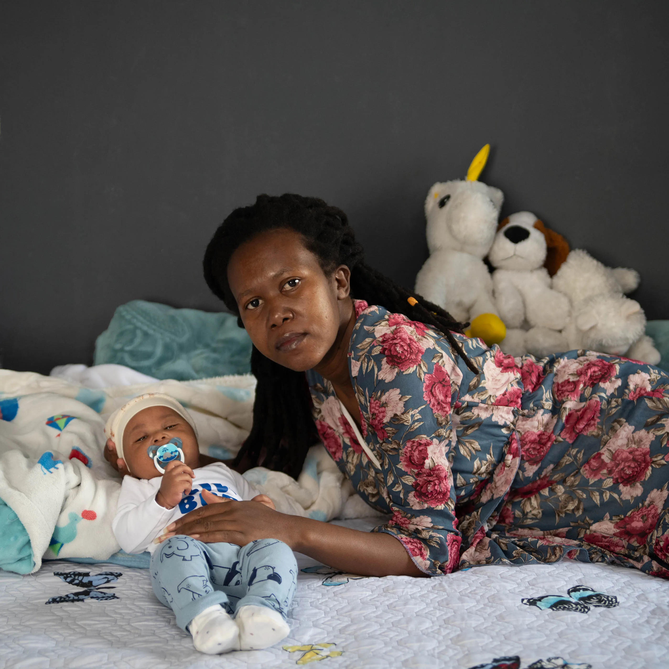 正午時分,約翰內斯堡的維特科普診所已人滿為患。婦女們抱着嬰兒靜坐在塑料椅上,躲避室外酷熱。Sitshengisiwe Sibanda也在其中,她將出生一週的嬰兒裹在胸前,8歲的兒子在一旁玩耍。她來此是為幼子體檢,並領取預防HIV感染的藥物。