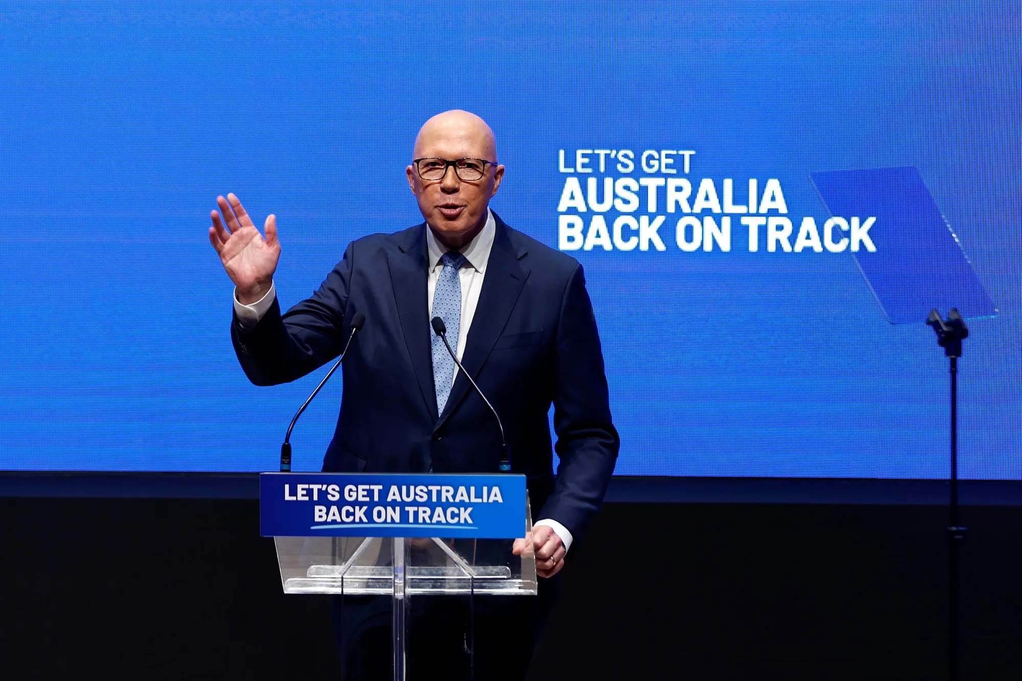 4月13日,彼得·達頓出席在悉尼舉行的自由國家黨聯盟聯邦競選啓動儀式。攝影師:Brendon Thorne/彭博社經過二十年國會生涯的打磨,達頓成功塑造了強勢領導人的形象,其政策主張與特朗普相似——大幅削減移民規模、精簡政府機構、逆轉進步社會改革。雖然比特朗普更接近建制派,達頓始終將本次大選定位為"軟弱"的阿爾巴尼斯與自身強大領導經驗之間的對決。
