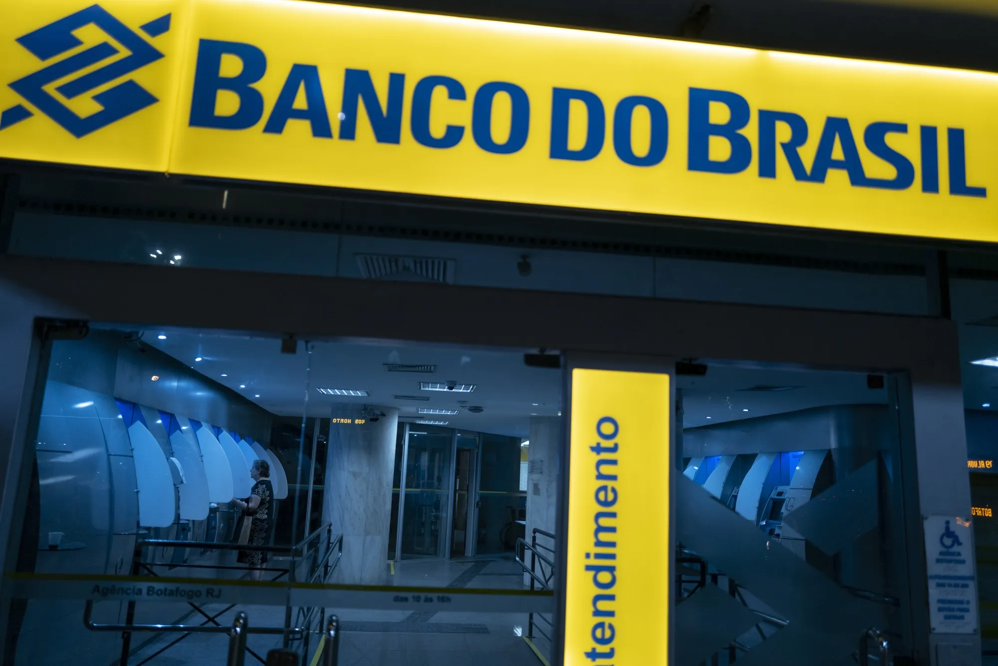 2023年5月4日星期四,巴西里約熱內盧,一位客户在巴西銀行分行使用自動取款機(ATM)。巴西銀行股份有限公司預計將於5月10日公佈盈利數據。攝影師:盧卡斯·蘭道/彭博社據知情人士透露,Genial和Warren等券商正在評估與巴西銀行建立合作關係,為個人投資者提供股票交易服務。