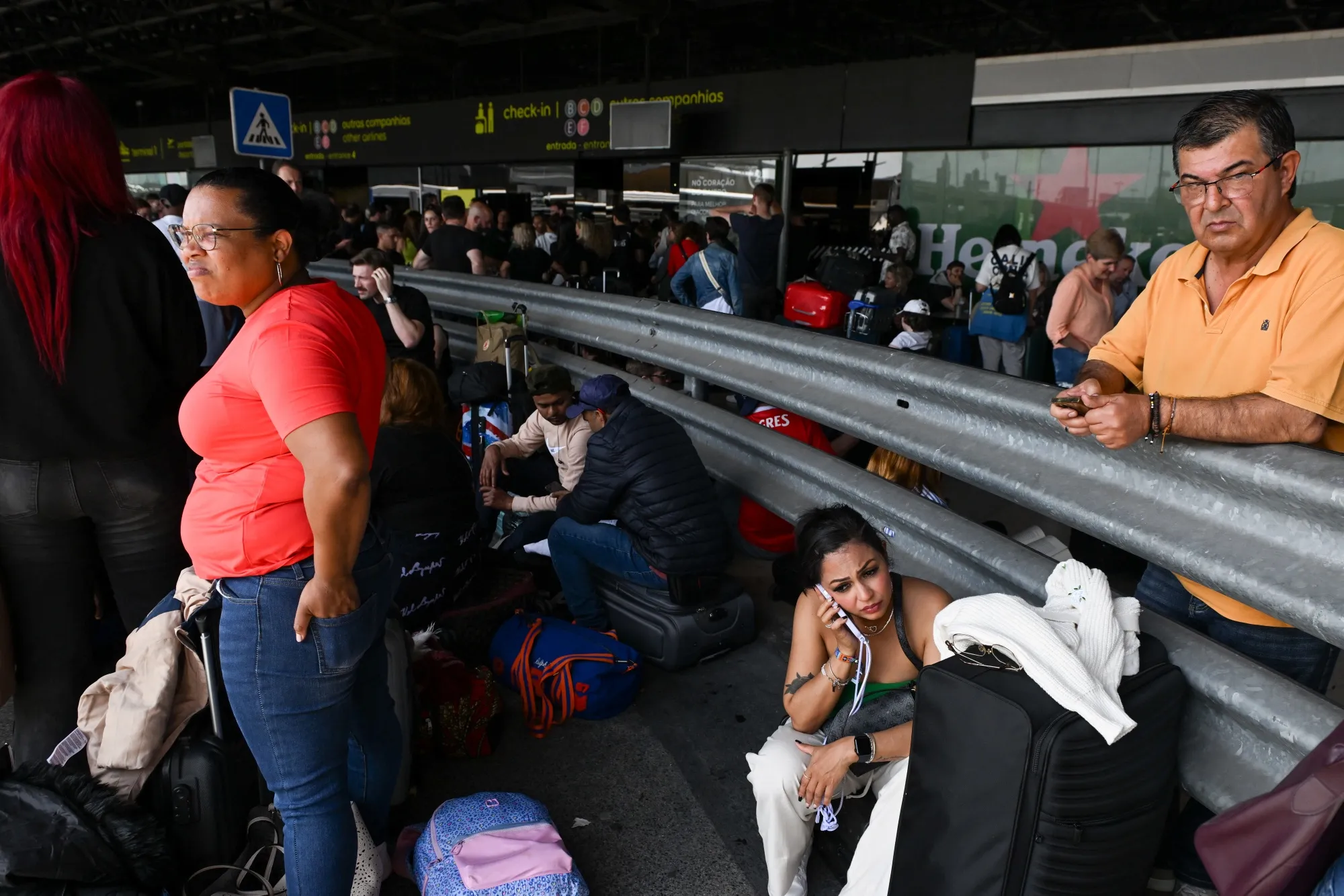 4月28日,葡萄牙里斯本大停電期間,滯留在里斯本機場的旅客。