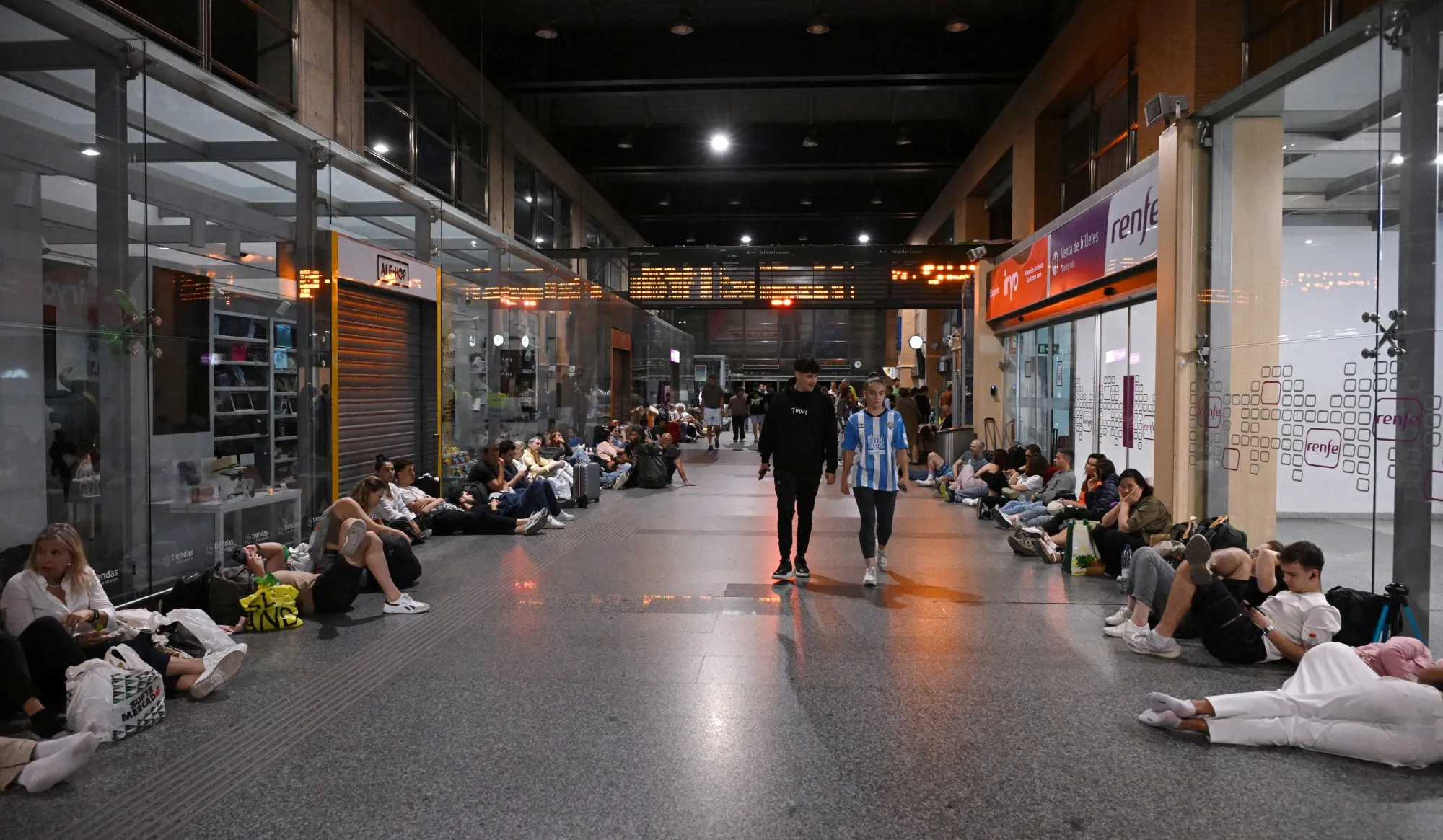 4月28日停電期間,旅客準備在安達盧西亞科爾多瓦火車站過夜。照片:Javier Soriano/AFP/Getty Images雖然電網按計劃得以恢復,但僅1.5秒後又發生了另一起事件——可能是又一次停電。接着——3.5秒後——西班牙與法國之間的連接中斷,導致半島與歐洲電網斷開。