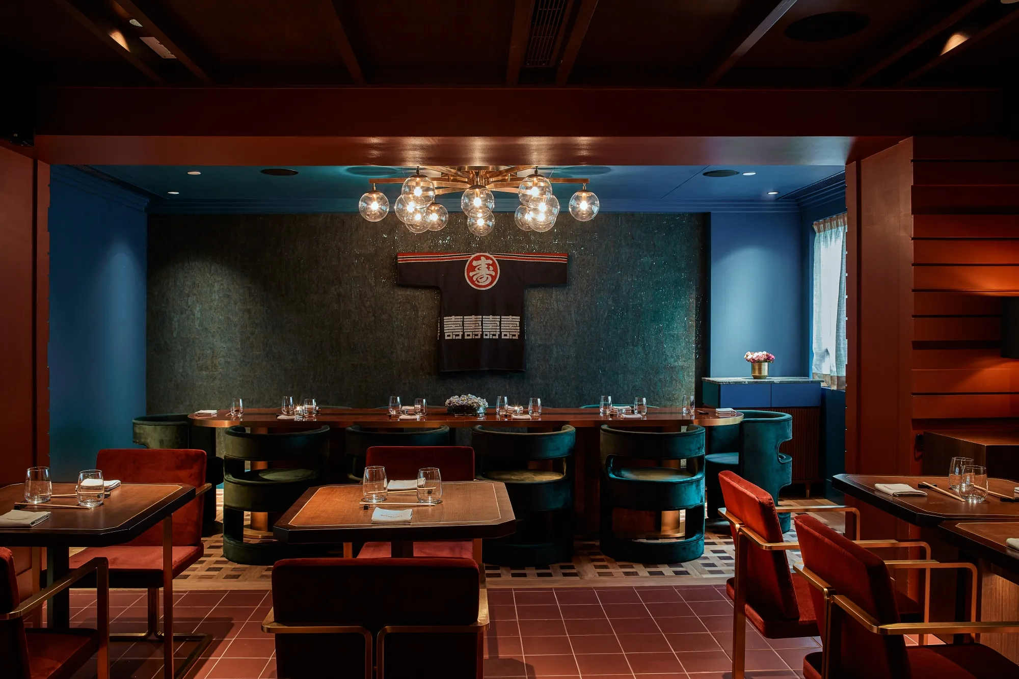 餐廳內部採用天鵝絨質感裝飾與幽暗氛圍。圖片來源:Honjo**氛圍:**可高雅可隨性——取決於顧客羣體。夜晚,這裏奢華的天鵝絨裝飾與幽暗燈光營造出約會聖地的感覺。但復活節早午餐時段,我也曾見過耶穌扮演者和復活節兔子坐在鄰桌。