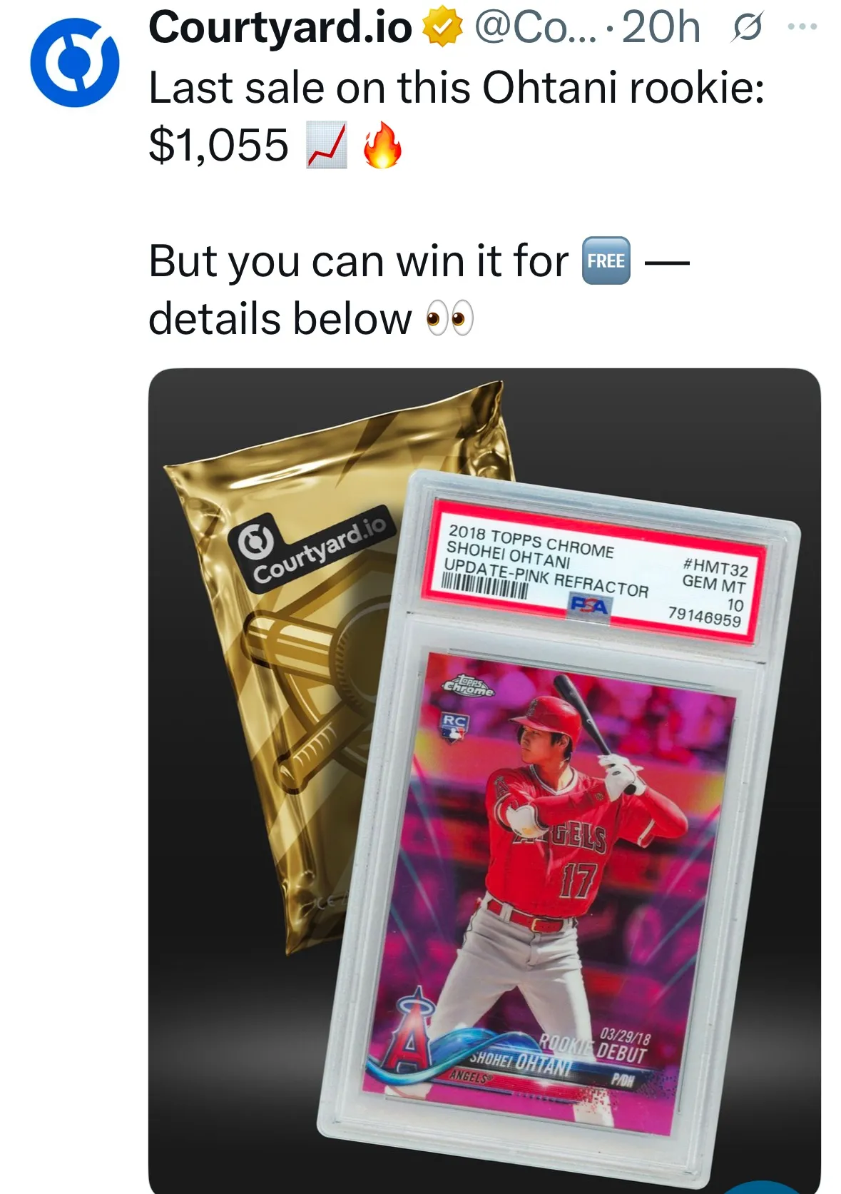 @Courtyard_io](https://x.com/Courtyard_io/status/1916992206659064314)Courtyard由谷歌和蘋果的前員工創立,並獲得了Y Combinator等機構的投資。實際上,它並不只專注於銷售NFT,而是發行與實體收藏品(如寶可夢或體育交易卡)相關聯的NFT。收藏家可以通過其虛擬自動售貨機購買一張神秘卡,如果願意,可以立即以成本的90%將其賣回給網站。le Jeune表示,正是這種自動售貨機推動了銷售。