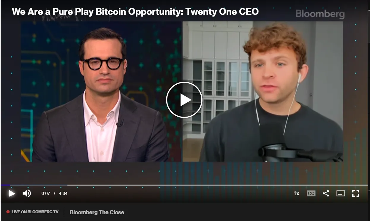 Twenty One聯合創始人兼首席執行官傑克·馬勒斯表示:“我們認為自己是資本市場中最純粹的比特幣投資標的。“他在彭博加密頻道與索娜莉·巴薩克和蒂姆·斯特諾維克進行了對話。### 更多彭博資訊