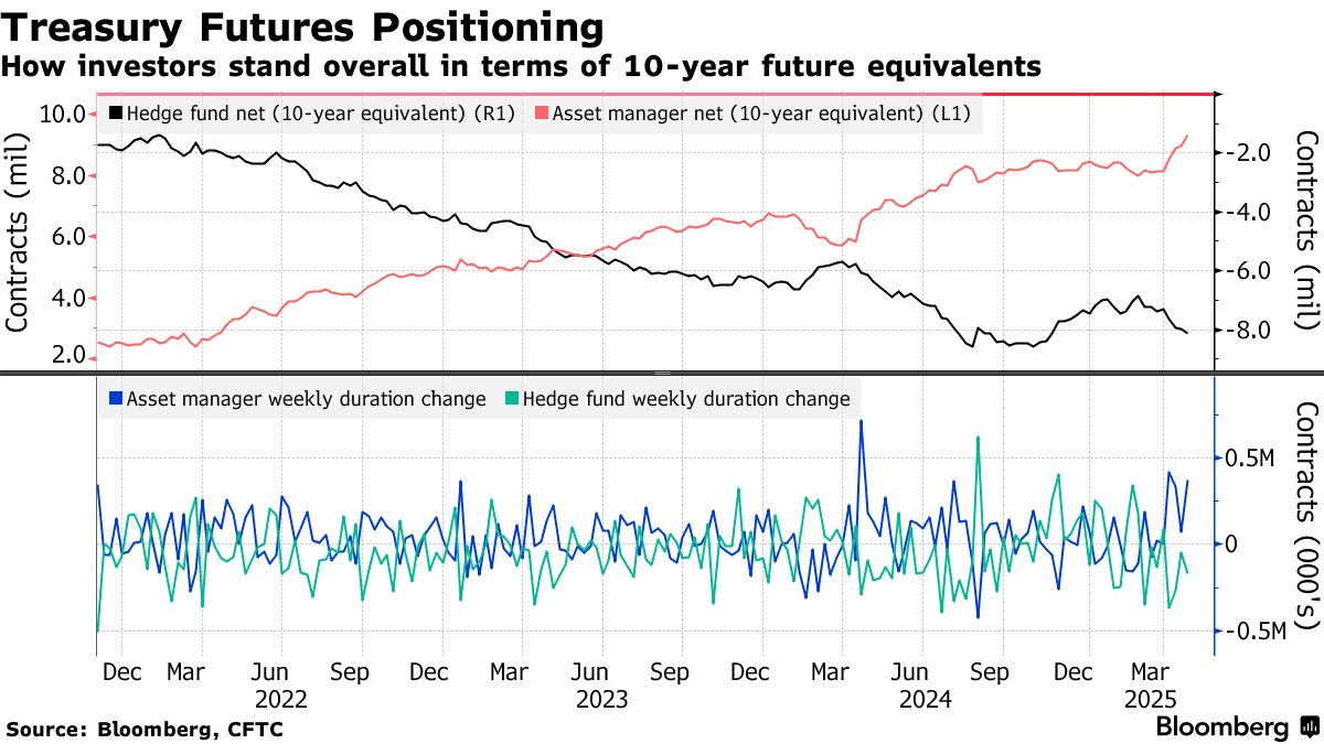 摩根大通客户調查顯示,在最初因特朗普關税公告引發的拋售後,投資者正重返國債現貨市場,過去一週多頭與空頭頭寸均小幅上升。