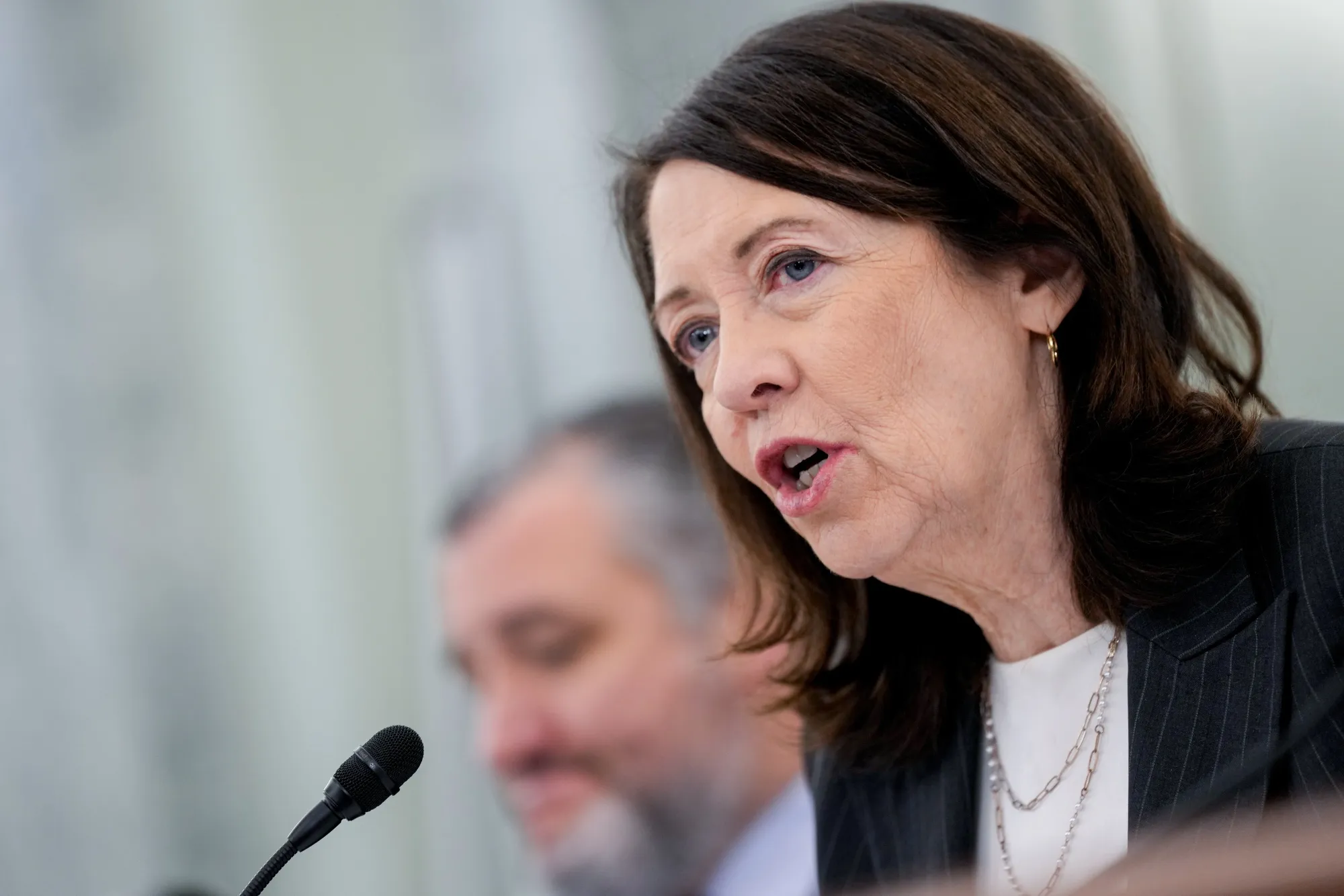 4月9日賈裏德·艾薩克曼聽證會上的參議員特德·克魯茲(左)與瑪麗亞·坎特威爾。攝影師:肯特·西村/彭博社但艾薩克曼向坎特威爾表示,若必須在月球與火星之間選擇,他會堅持NASA現有計劃。