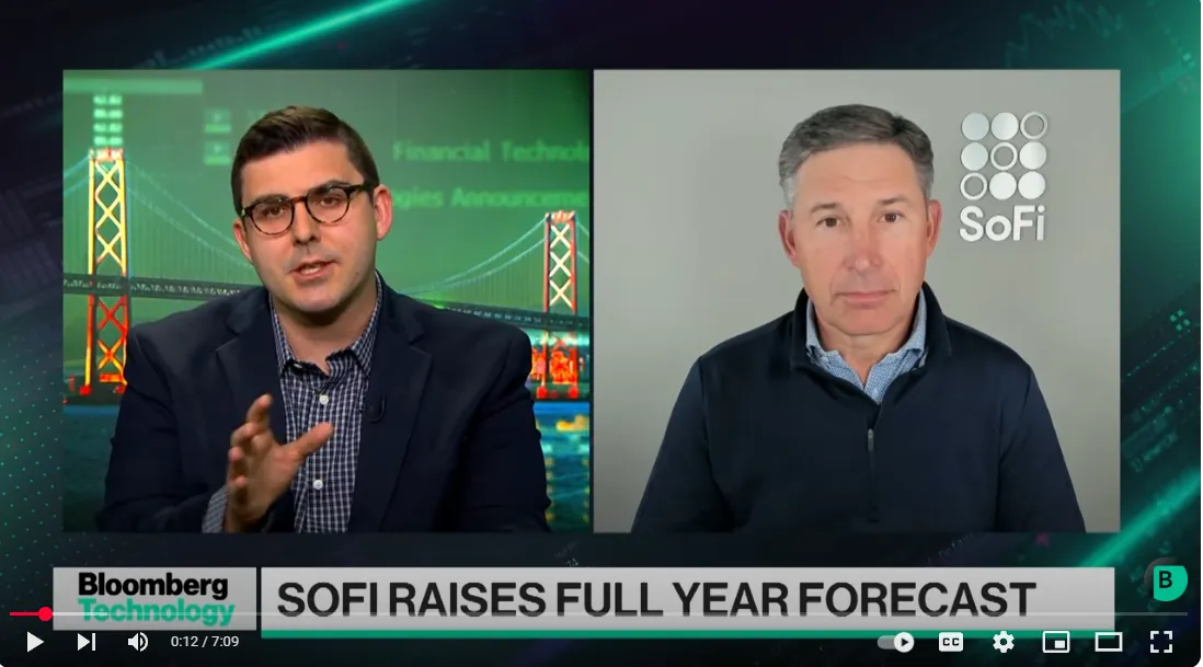 SoFi首席執行官安東尼·諾託做客彭博科技節目,在公佈強勁的第一季度財報並上調全年業績指引後,探討這家金融科技公司的發展前景。