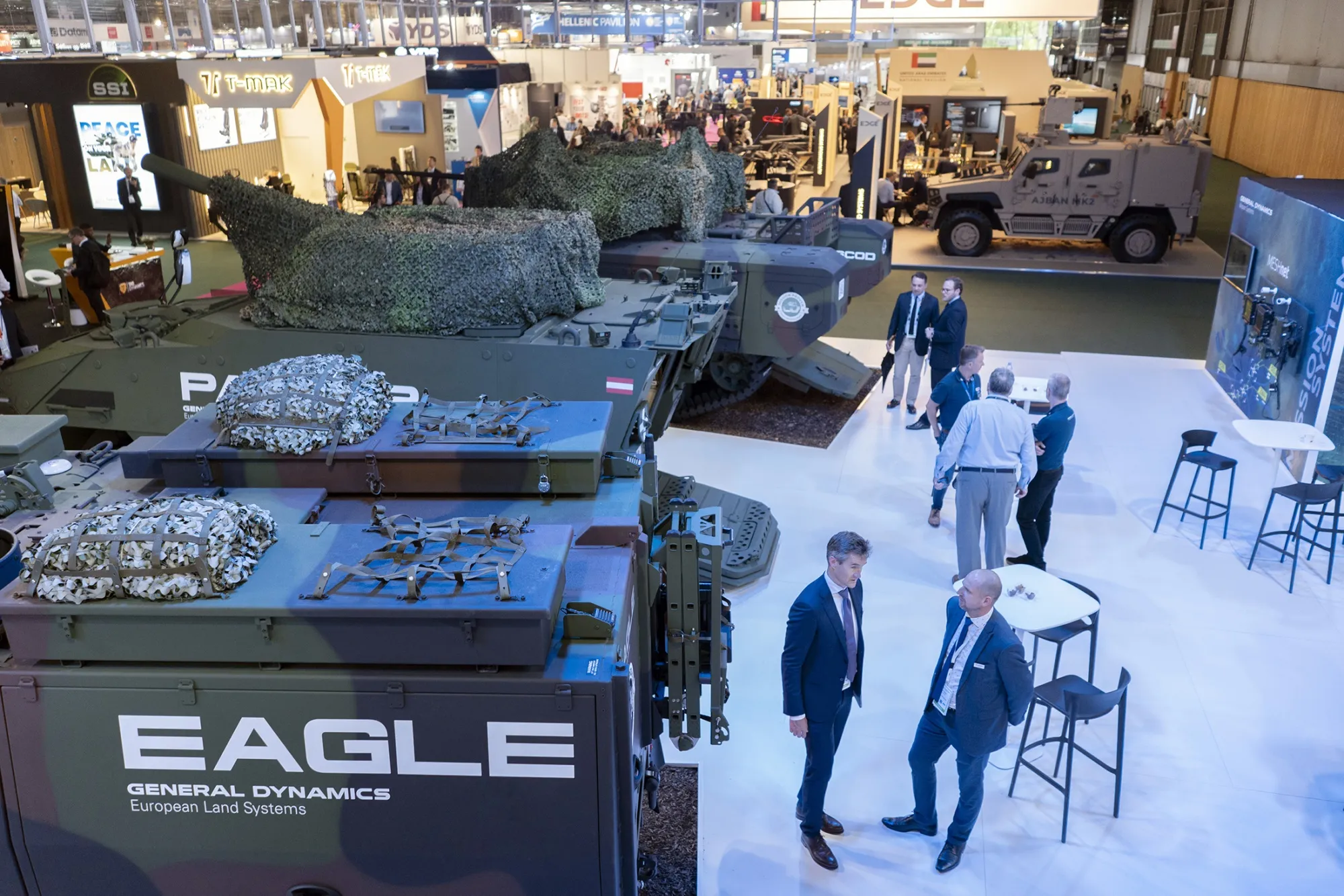 2024年巴黎歐洲國際防務展上,一輛通用動力歐洲陸地系統公司生產的4x4"鷹"式裝甲巡邏車。攝影師:Nathan Laine/彭博社瑞士軍工產業僅佔該國經濟總量的0.2%左右,提供約1.4萬個就業崗位。但該國的"武裝中立"政策放大了這一行業的重要性——瑞士法律明確規定必須維持"符合國防需求的工業產能"。
