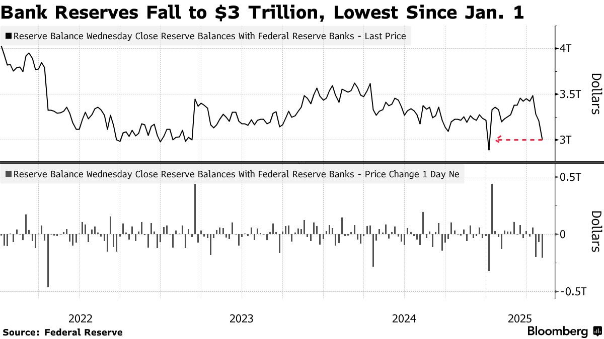 美聯儲銀行準備金降至3萬億美元,創1月1日以來新低——彭博社