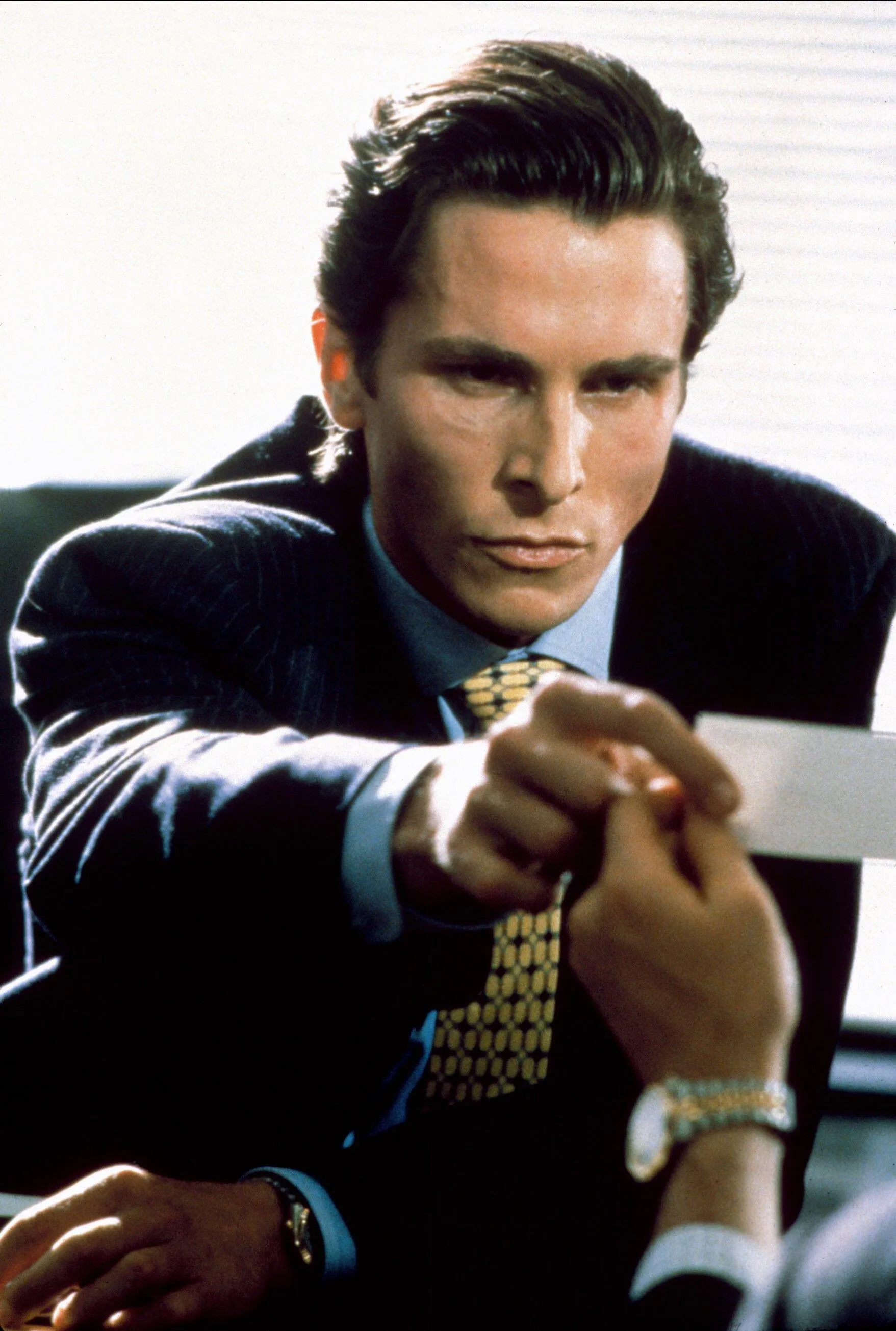 克里斯蒂安·貝爾飾演的帕特里克·貝特曼,《美國精神病人》中痴迷於地位的反英雄。照片:AJ Pics / Alamy Stock Photo/www.alamy.com