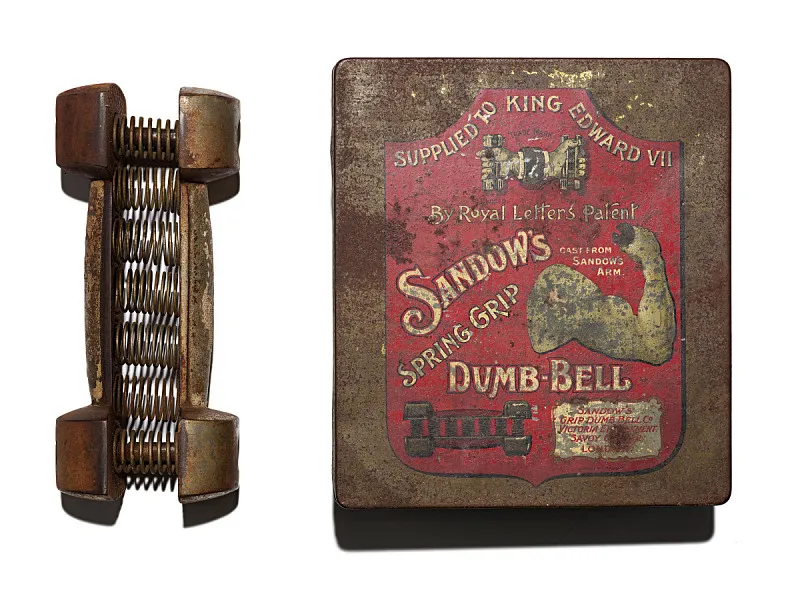一隻彈簧啞鈴,桑多品牌眾多產品之一。照片:Jaclyn Nash/美國國家歷史博物館審美理想總是受到文化運動的影響,這些運動基於政治和經濟緩慢而艱難的變遷。我們今天所熟知的肌肉發達的男性理想並非一直是男性魅力的典範:19世紀初的美男子理想是一位紳士——蒼白、瘦削,帶有浪漫憂鬱的氣質。
