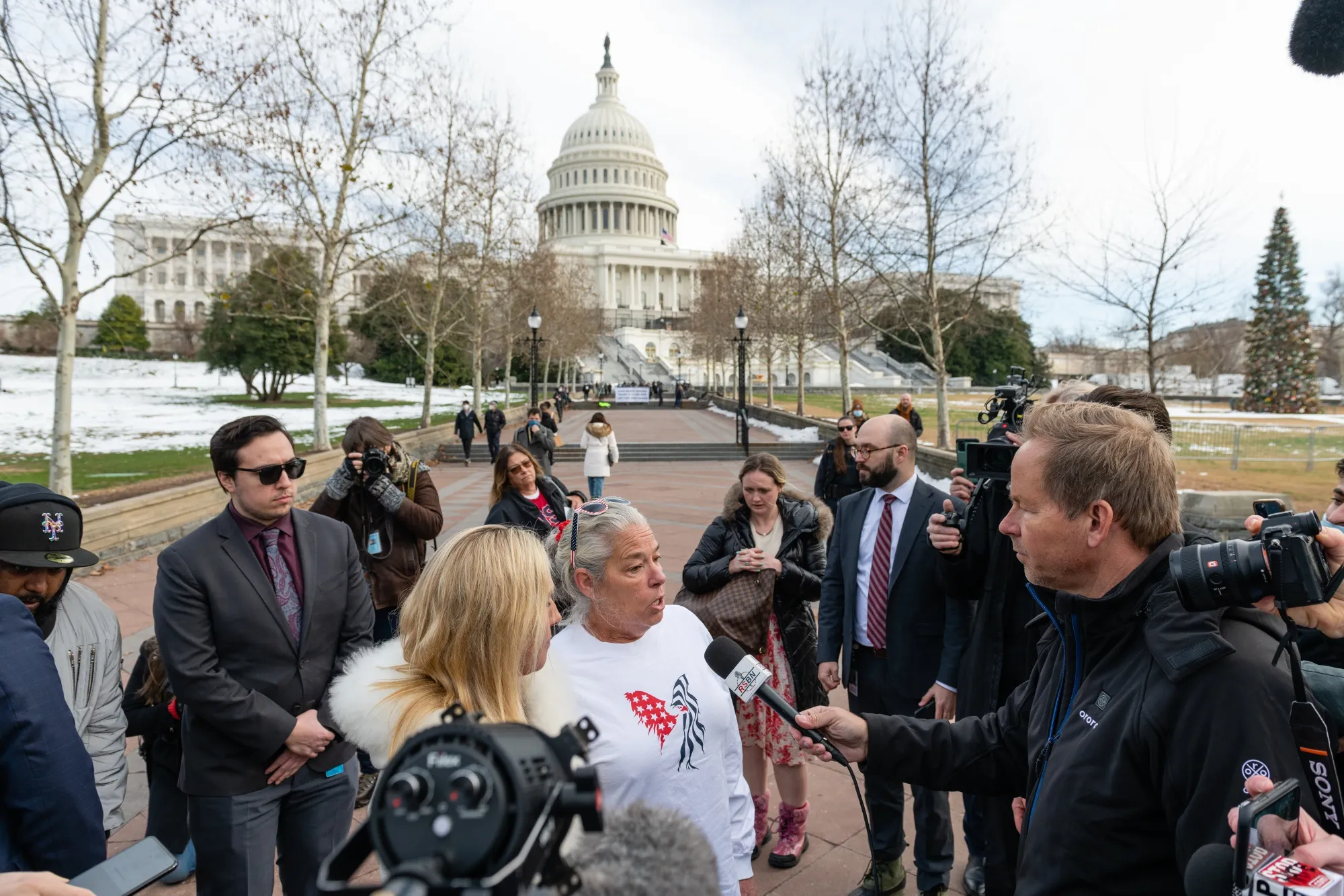 2022年美國國會大廈暴亂一週年之際,左中為眾議員瑪喬麗·泰勒·格林與阿什莉·巴比特的母親米琪·維特霍夫特。