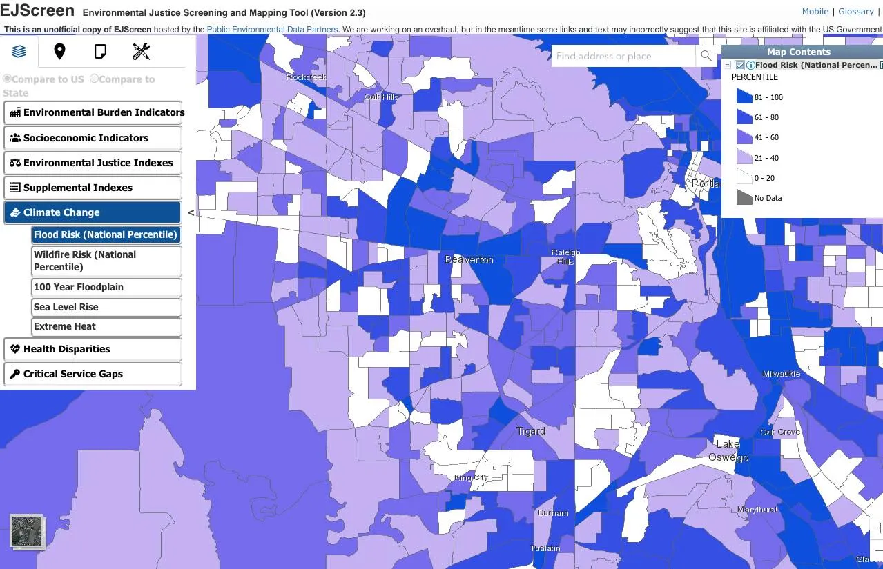 美國環保署EJScreen工具的復原版本資料來源:公共環境數據合作伙伴